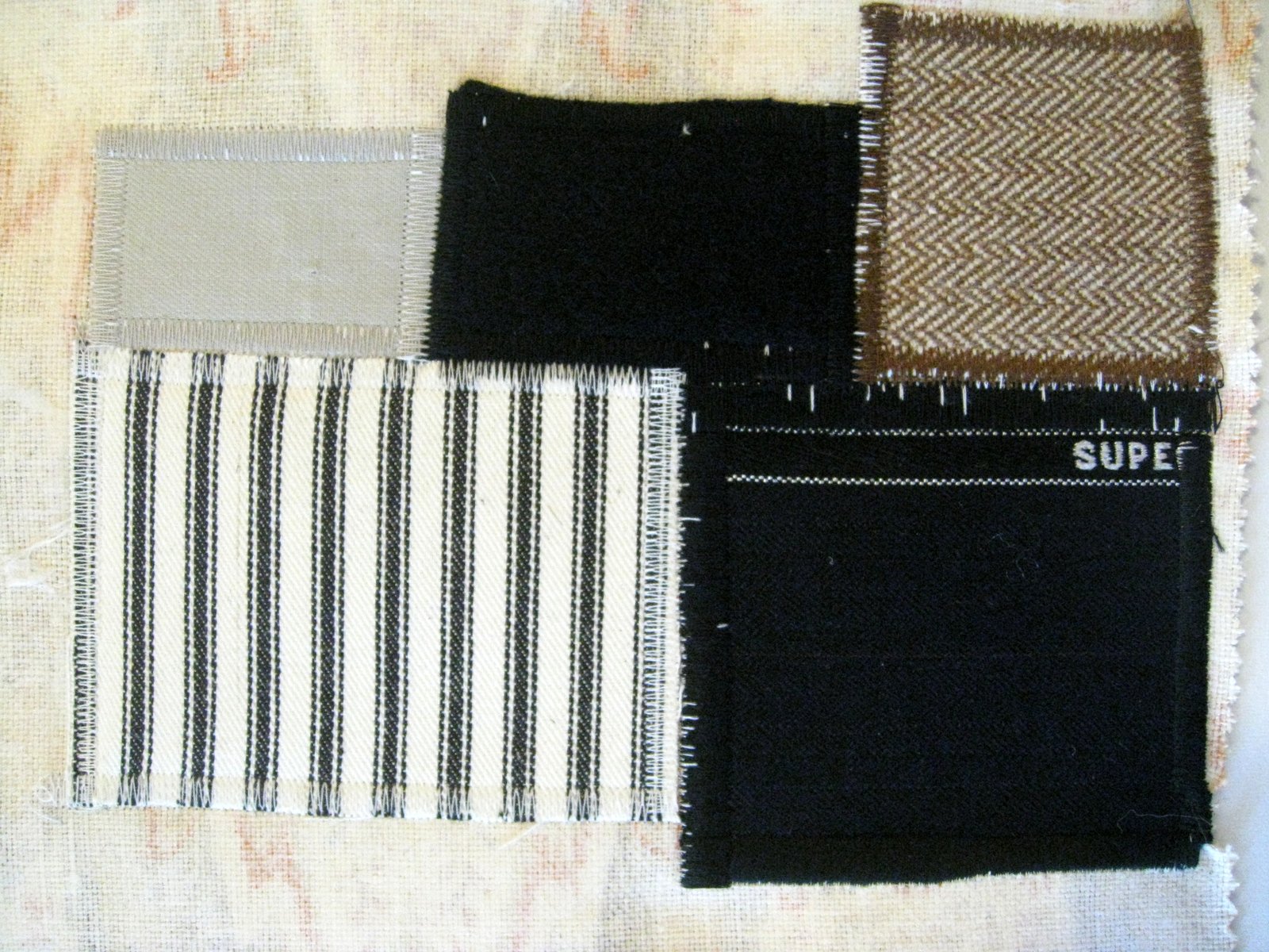 I sampled the type and colour of stitching to use to attach the textiles: How wide to make the zig zag, how close together so the stitching showed but didn't dominate.