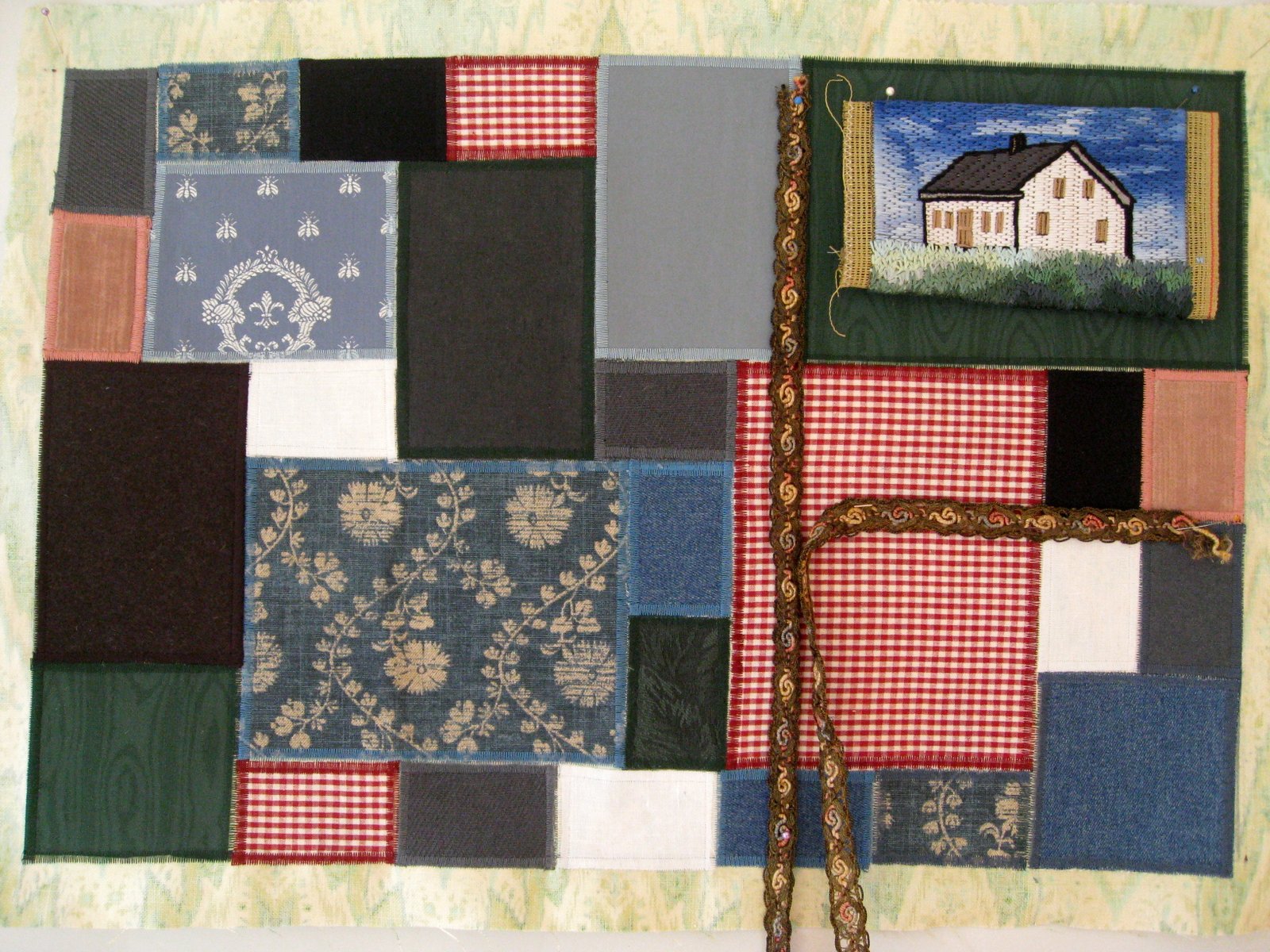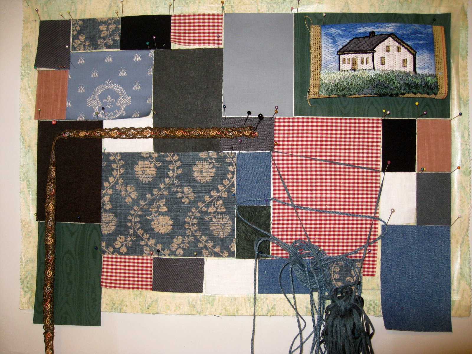 Auditioning different braids and cords to use as the lines on the post card.