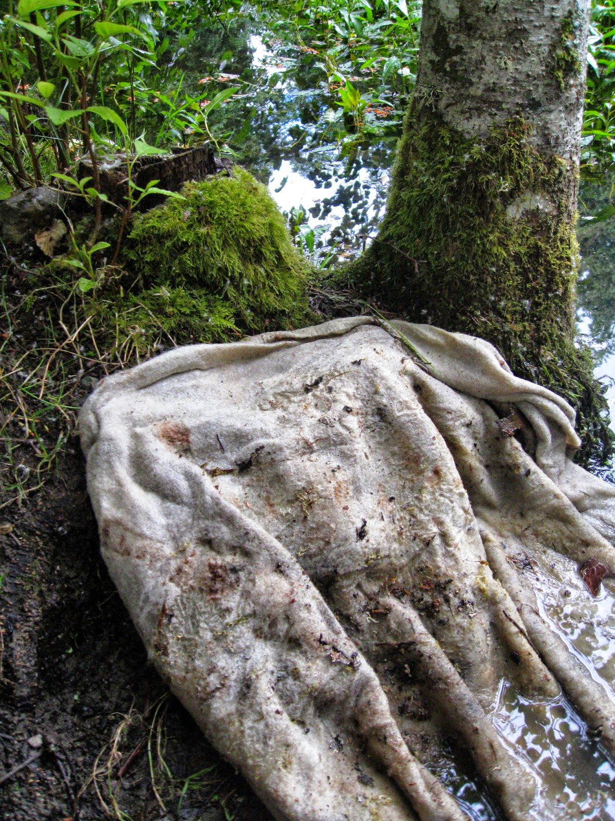 The Fairy Ring mushrooms, lichens and bark had been wrapped in a wool blanket for over month.