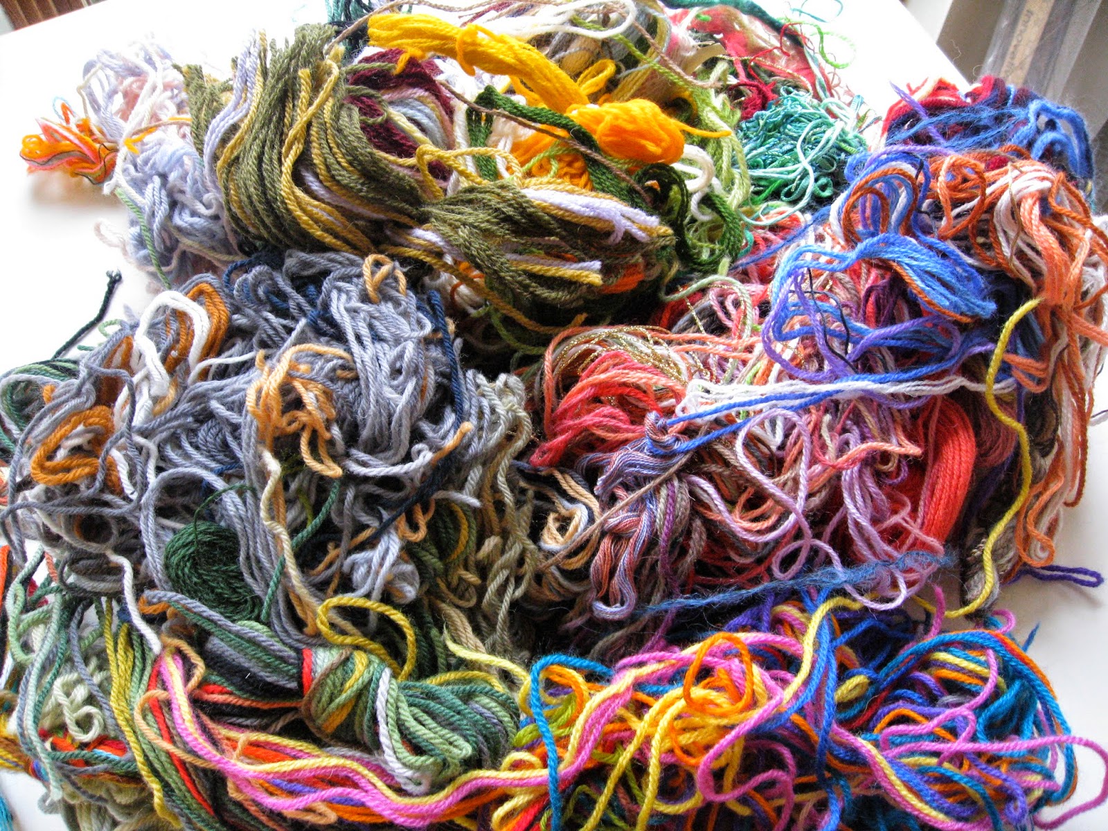 While spring cleaning I gathered up all of the wool threads from pre-owned kits I had collected, having taken the fabric out for other projects.