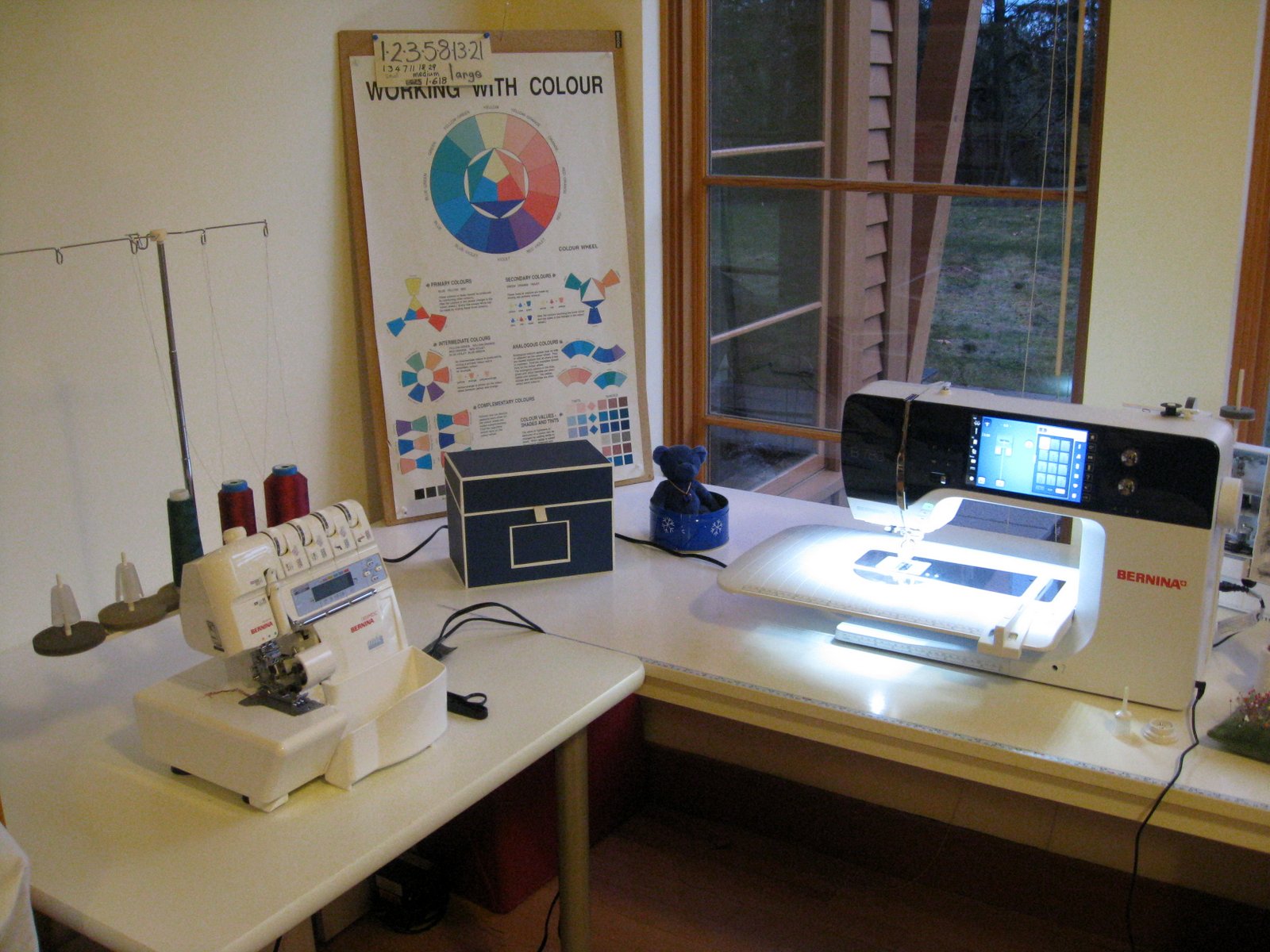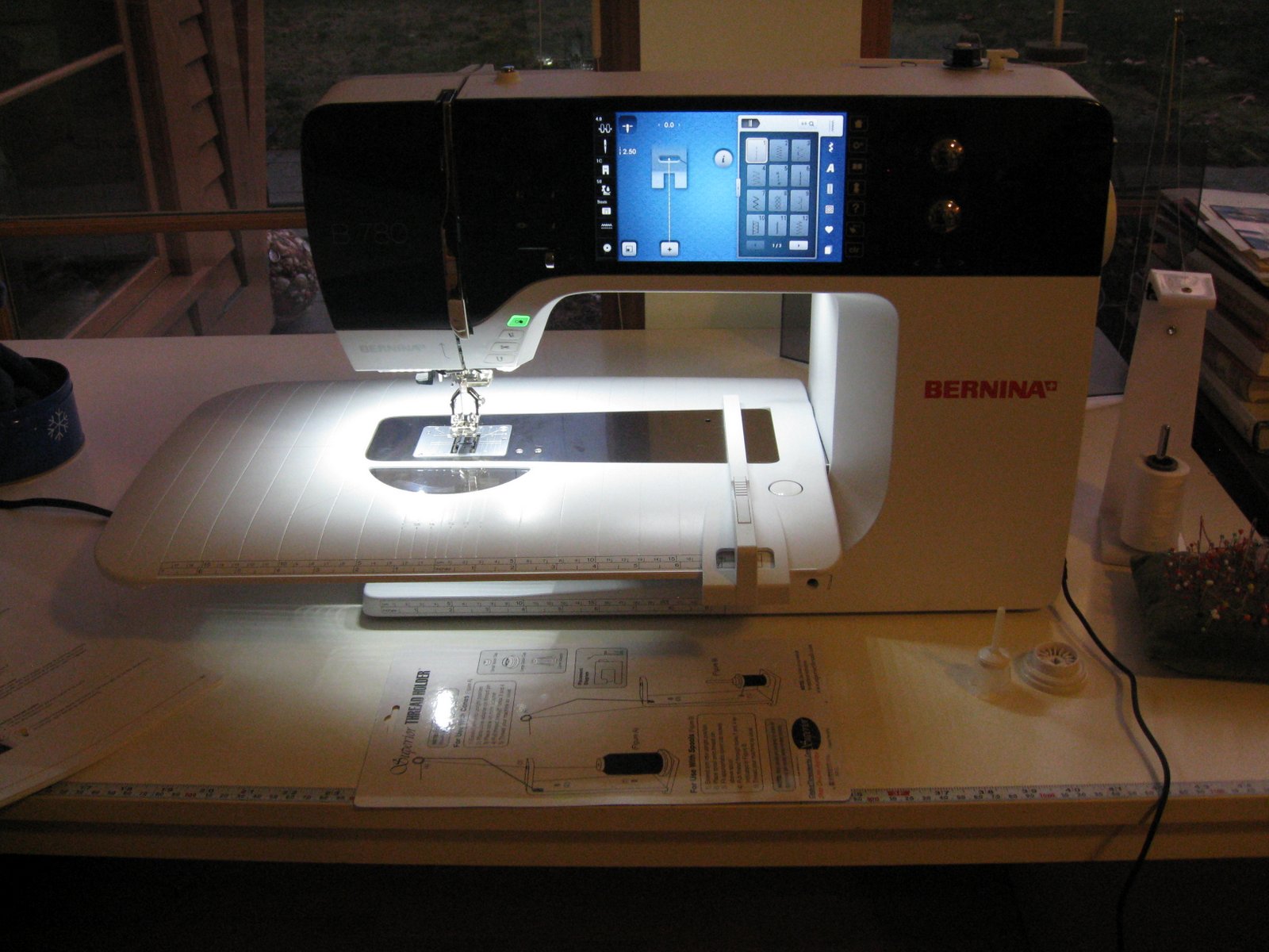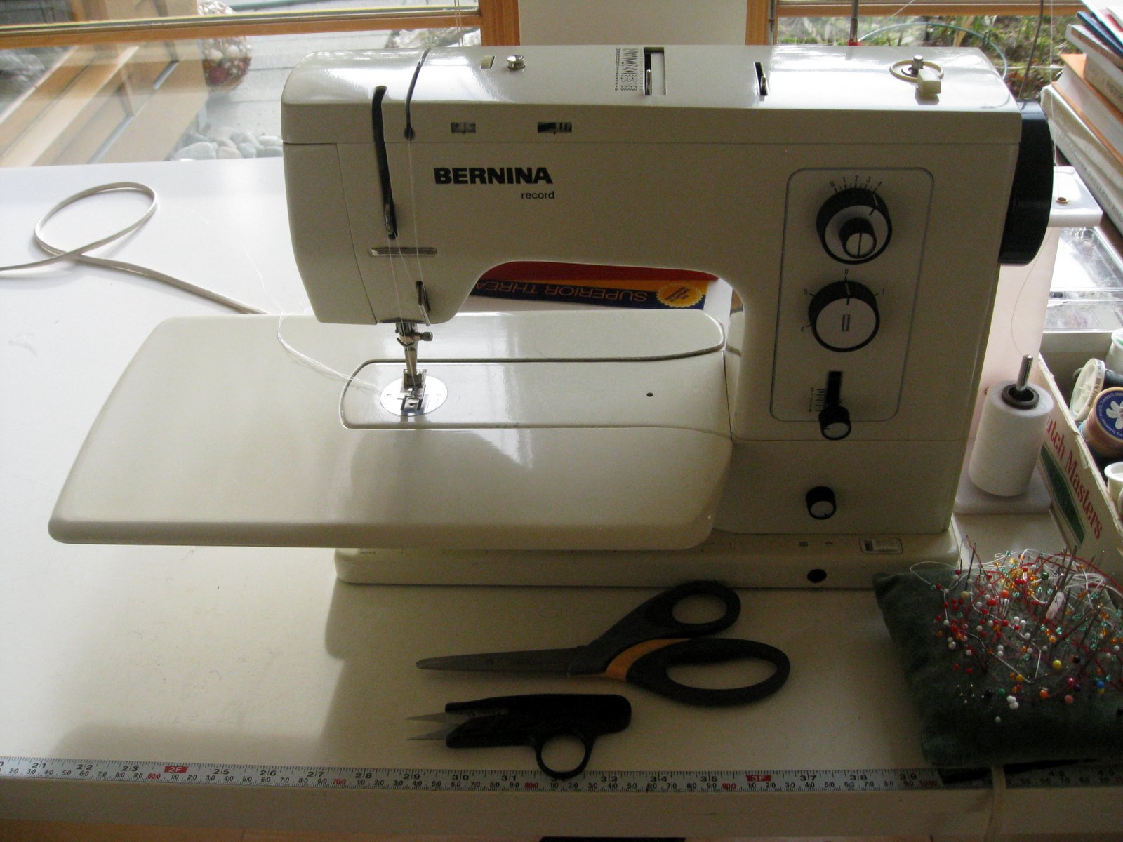 My sewing corner got a thorough cleaning while I just looked at my new machine and felt a little sad about my faithful old Bernina tucked under the table (just in case I need it).It will be a steep learning curve to go from an all mechanical 40-year old machine to working with the newest addition to Bernina's stable. I am ready to master my new machine.