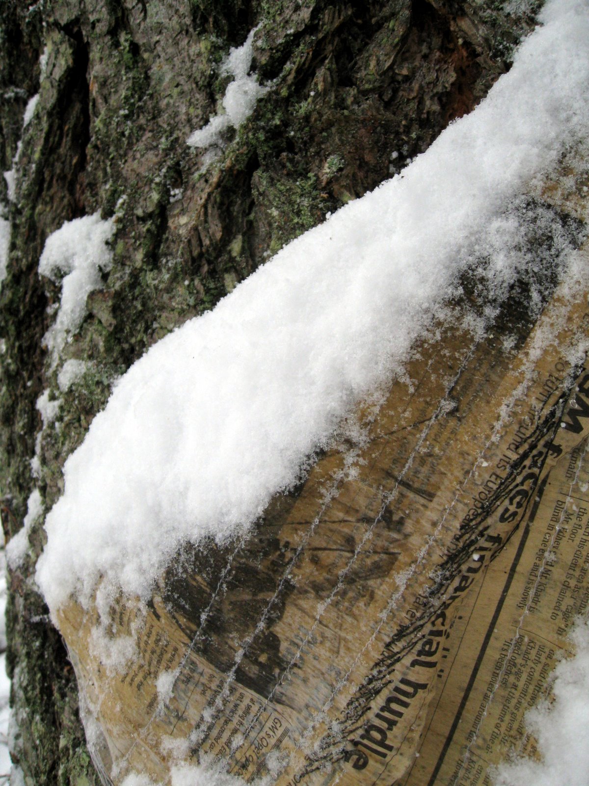 The cloths wrapped around the 4 trees were quite wet. If they are still damp during the next warm spell some interesting marks may emerge.