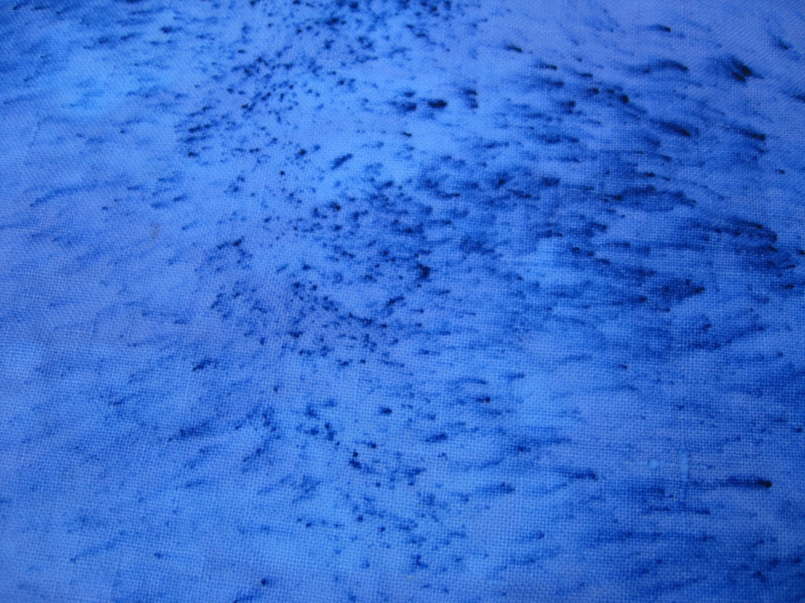 Wet soda-soaked natural fabrics were folded, rolled and scrunched before sprinkling dye powder over them.