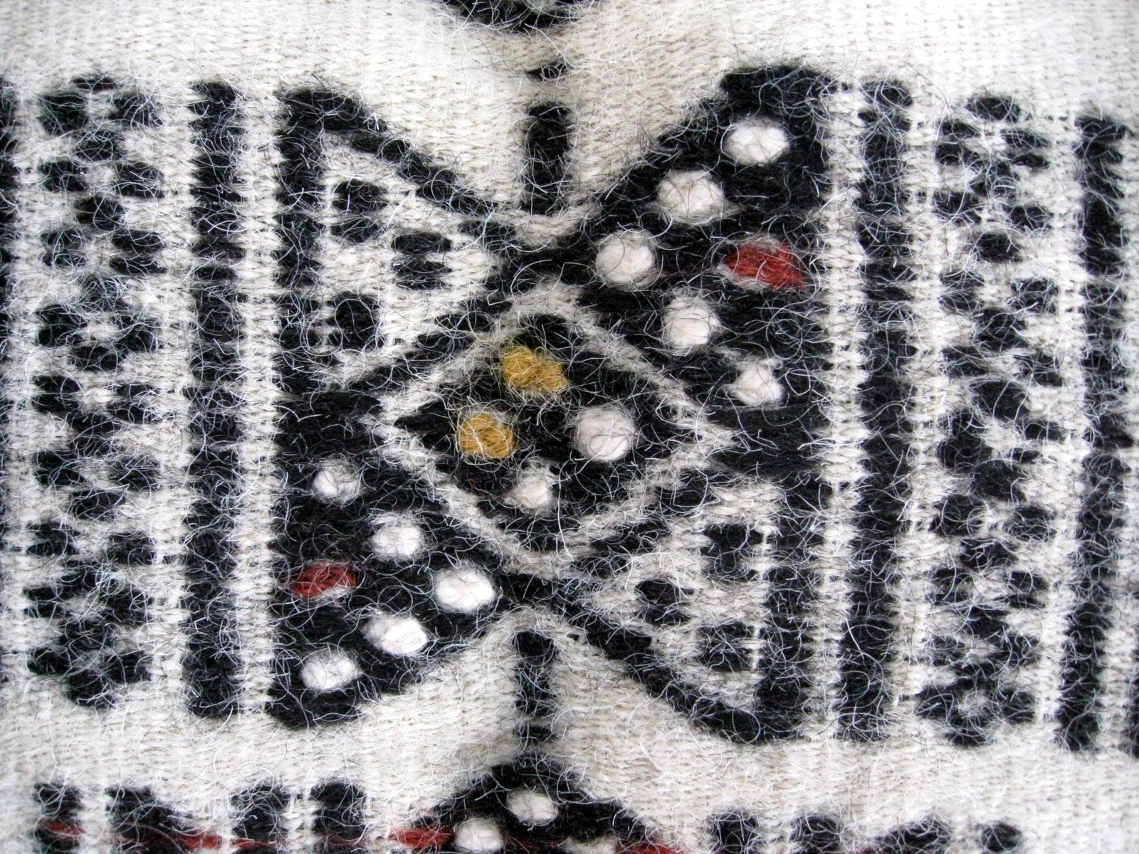 The stitched areas appear to be worked in a much softer fibre, like wool.