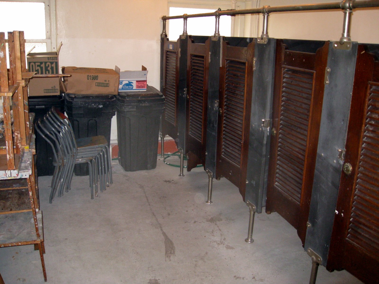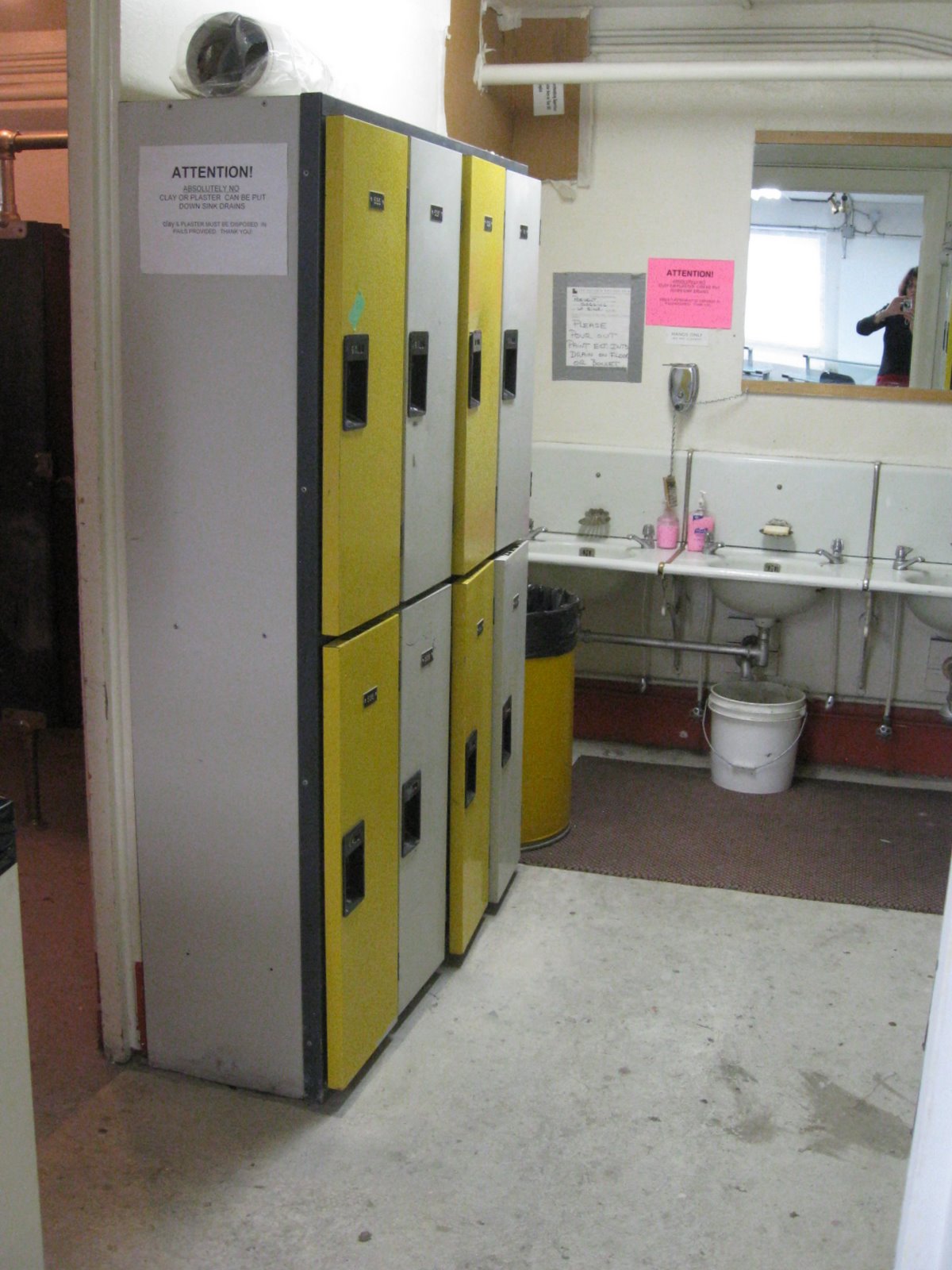 Hand basins and lockers.