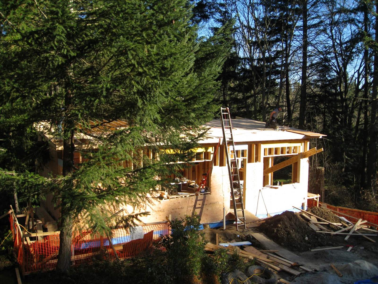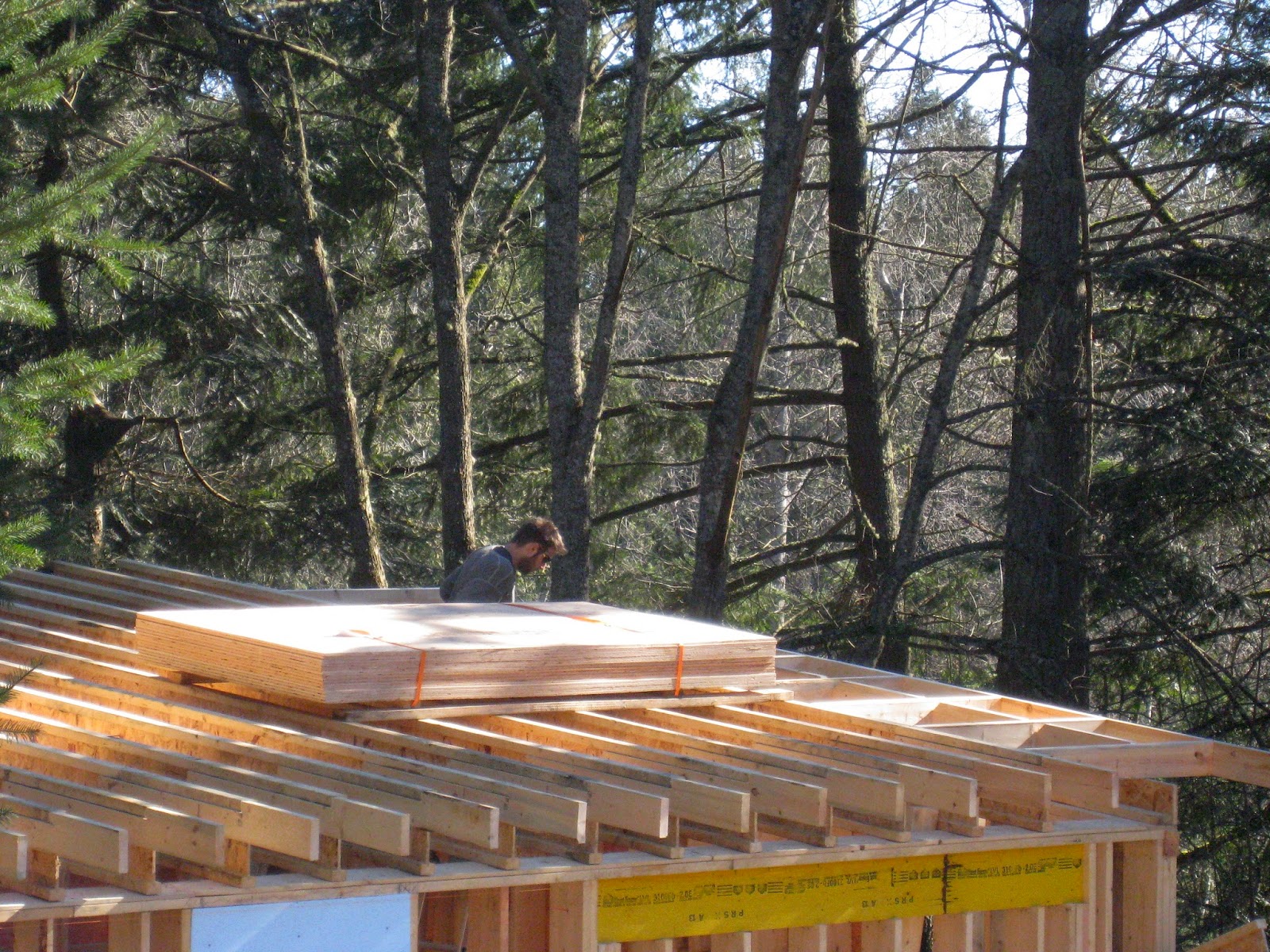A sunny day and the race to get the plywood layer on before the next lot of rain.