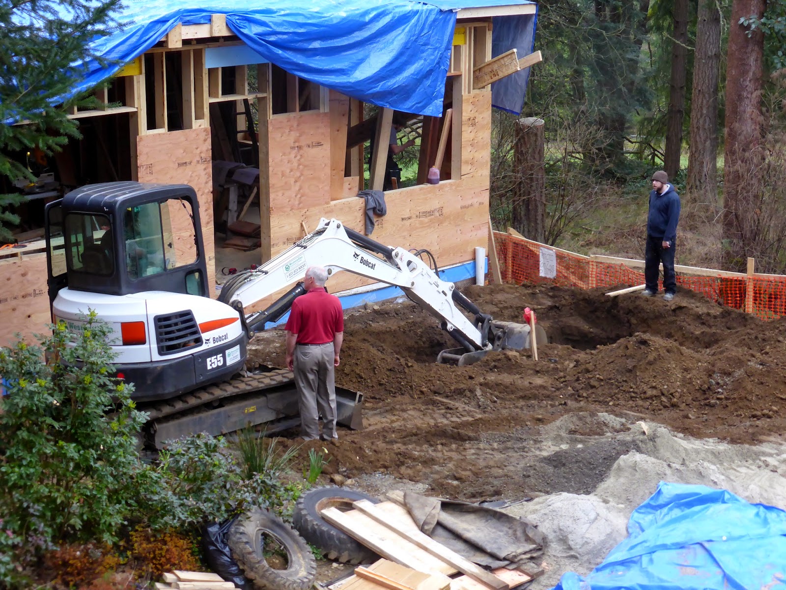 The resident 'retired, always-an-engineer' consulting with the digger operator, Aaron Yager, the owner of the construction company.