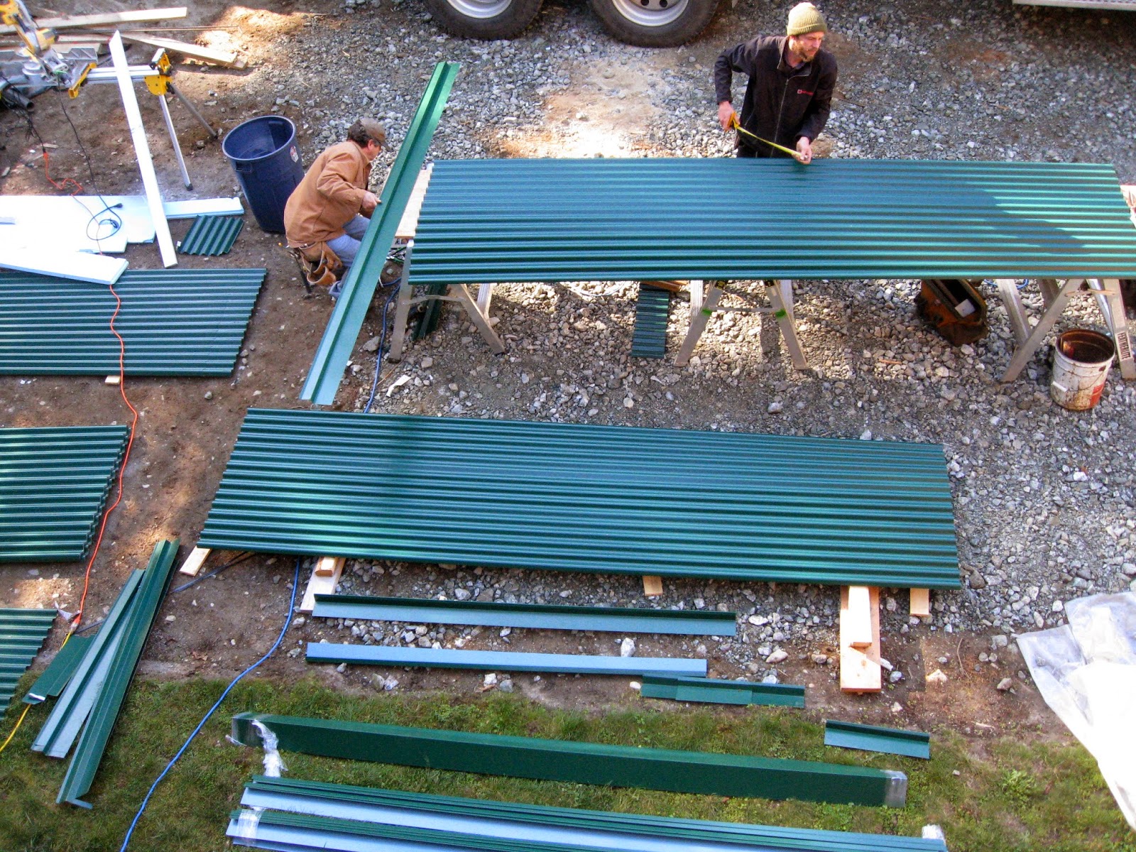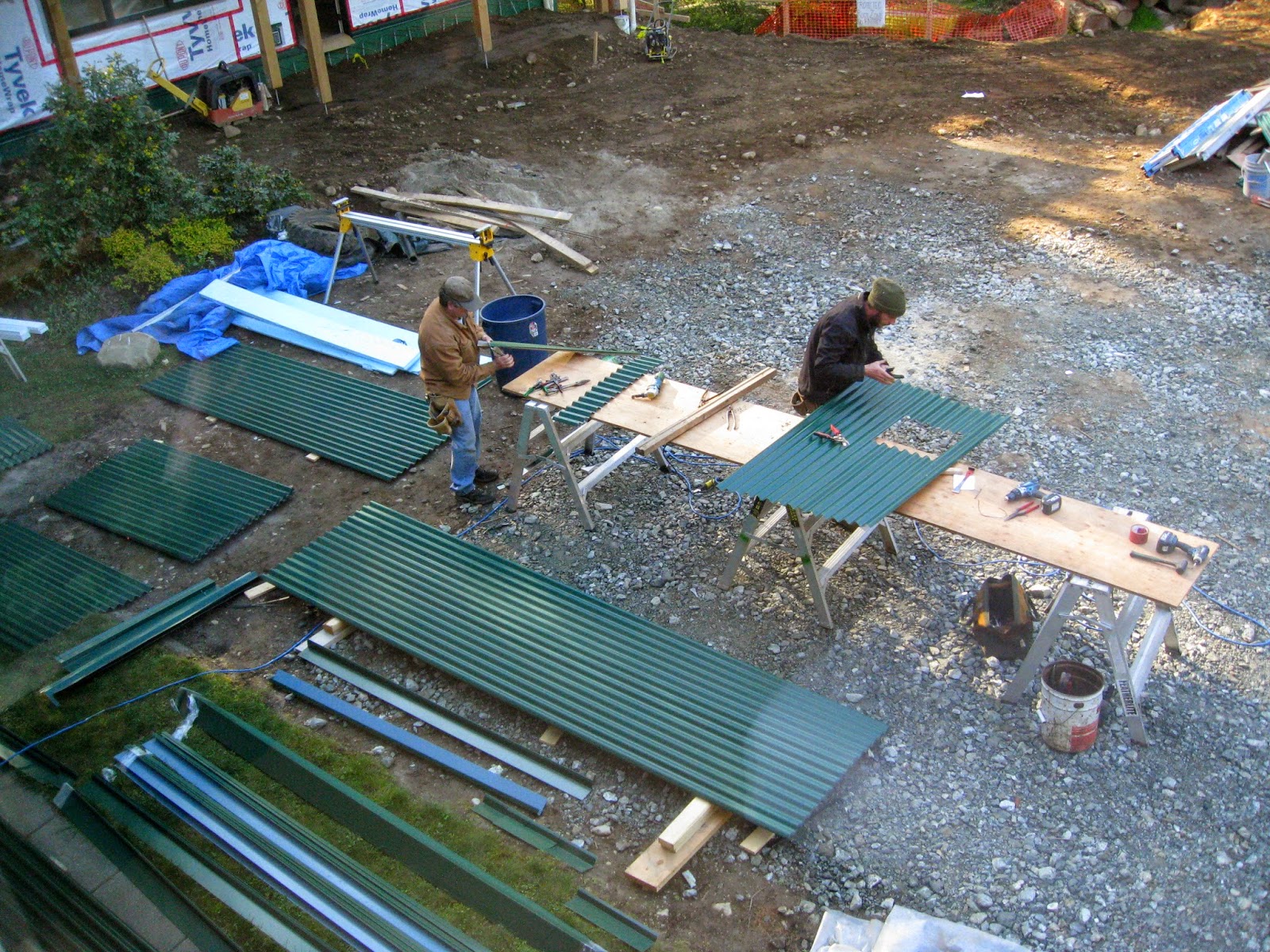 While factory painted metal sheets won't break down when exposed to the elements, we also chose to go with a heavier gauge steel for added durability. Metal sheet thickness is measured by the number of sheets that make up a specified weight, giving a gauge number. We went to 26 gauge rather than the 24 or 29 gauge. This added strength fits our design requirement that the building and material finishes have a life expectancy of 25 to 30 years before needing maintenance or replacement. All of the trim, soffit and guttering will be made out of metal and will have a similar life expectancy. The building is located under tall trees and will likely be hit by the natural process of falling branches known as snags. The thicker gauge sheets will resist possible denting better than lighter gauge sheets.