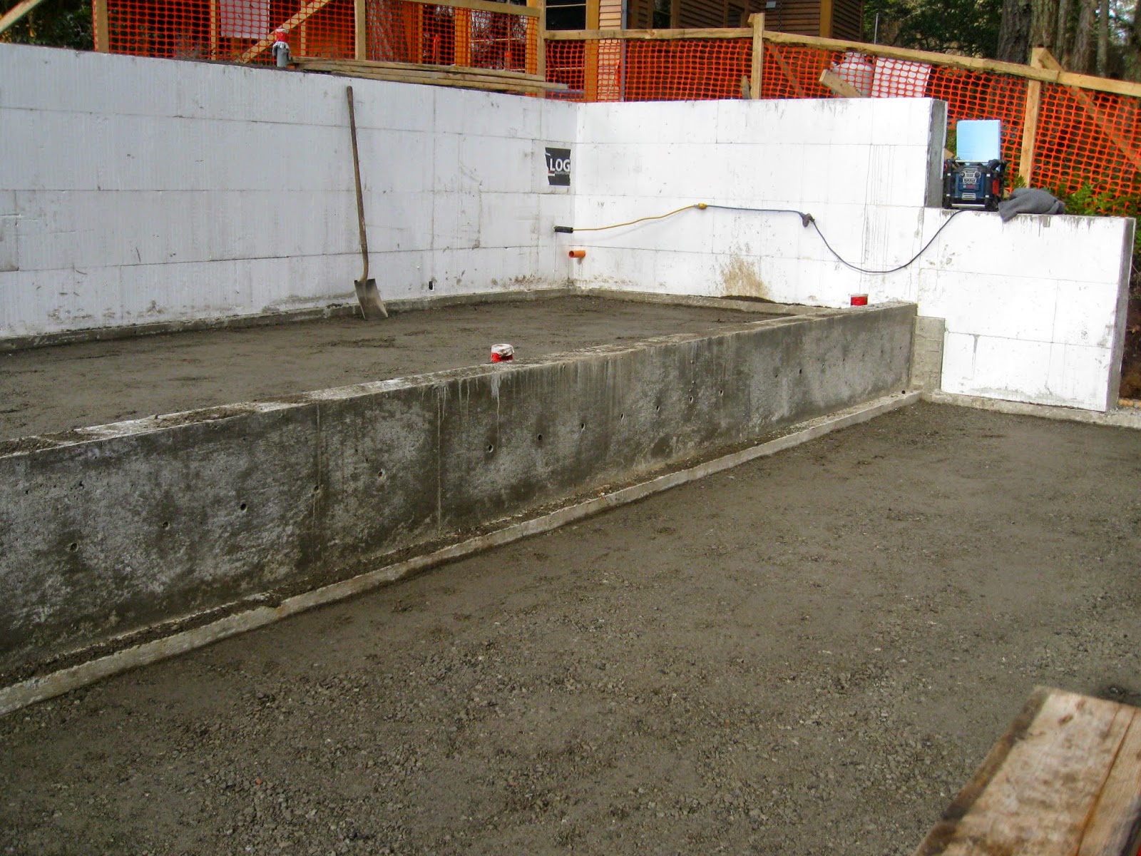 All of this concrete will act as a heat sink as its mass will slowly absorb heat over the summer. It will slowly release that heat over the winter. That stored heat will radiate upward into the studio where and when it is needed, i.e. to keep me warm while I am working.