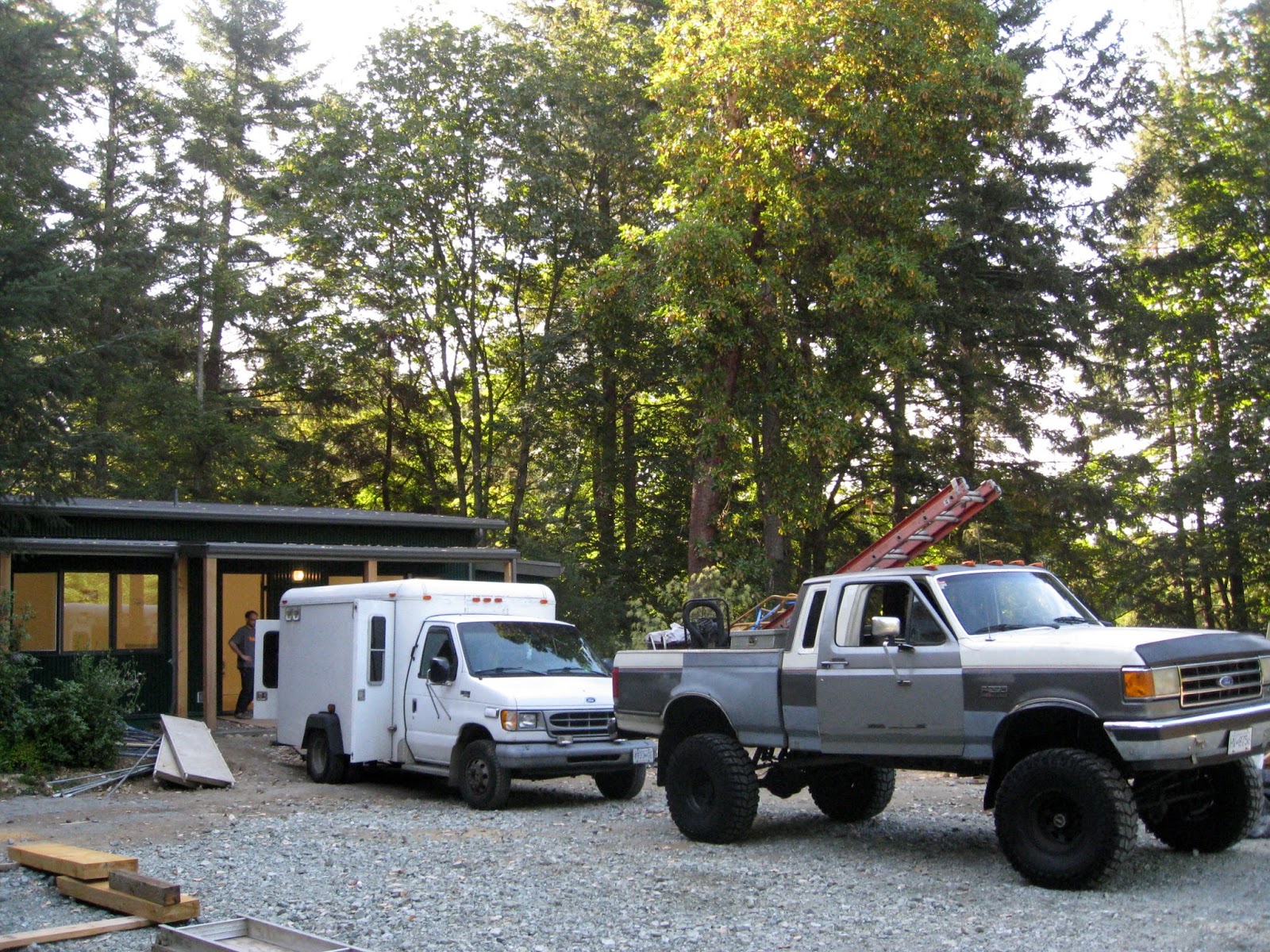 I see Adrian's truck. That means he may be here to install the flooring. The other mean looking truck belongs to Chris, Adrian's assistant.