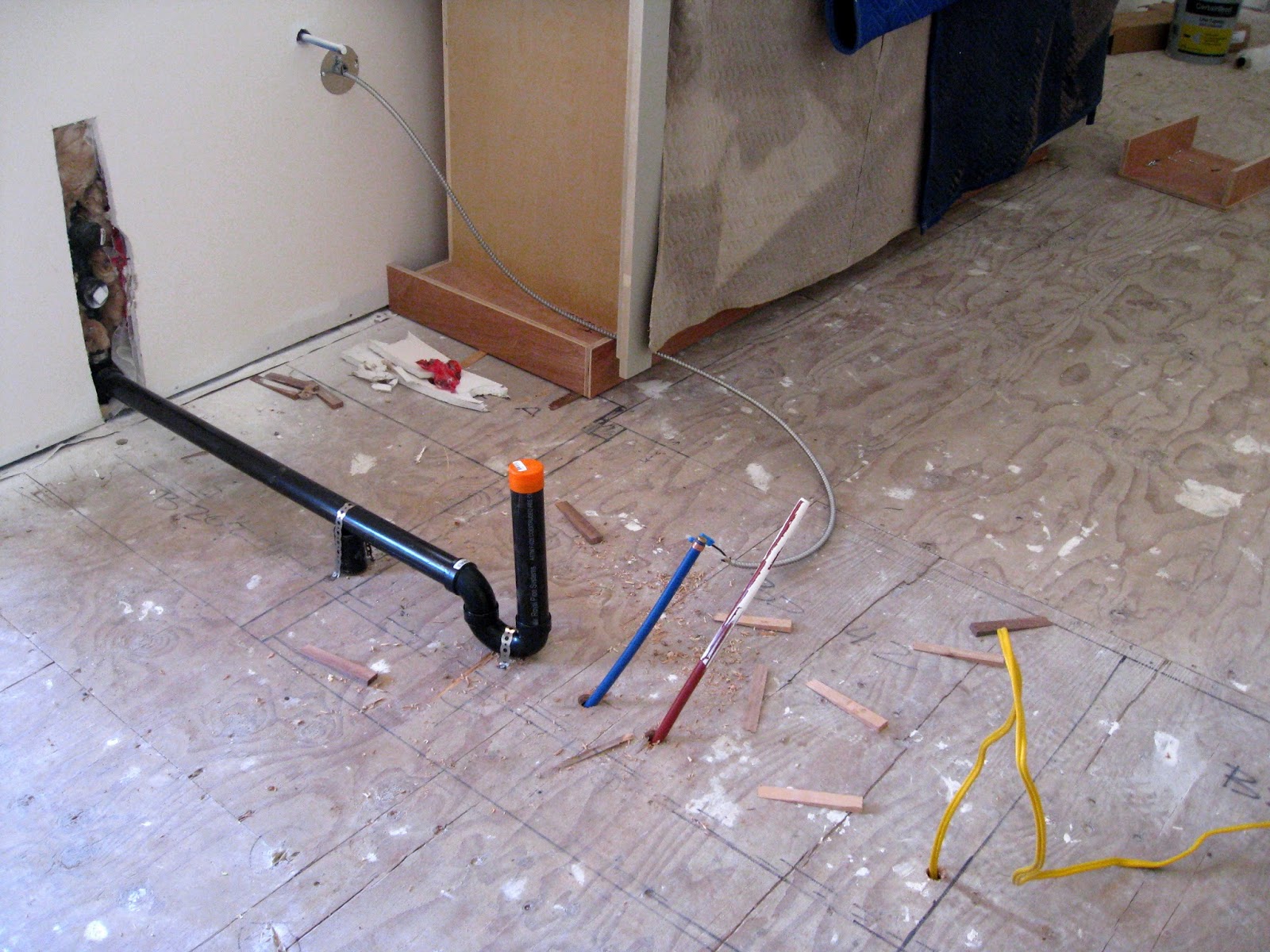 Then the Lego blocks get moved out of the way so the plumber can do his thing.
