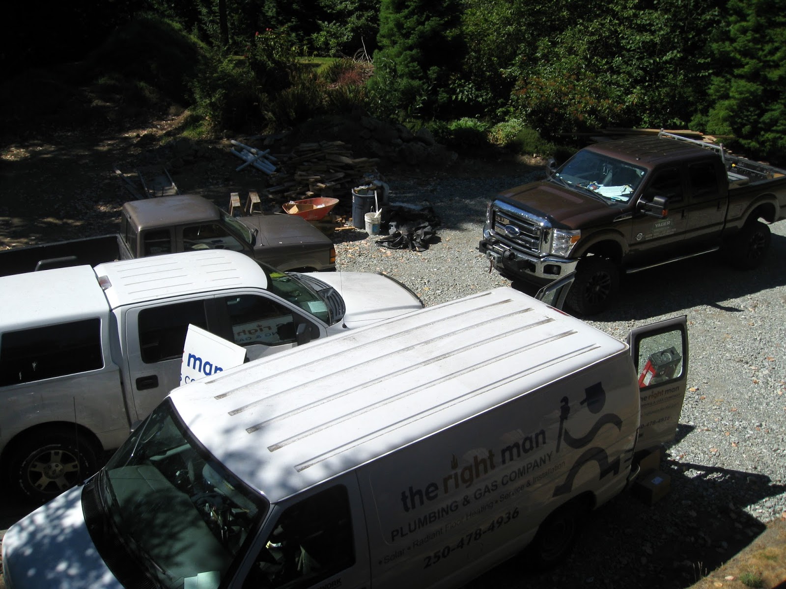 There were lots of different vehicles in the back yard this day.