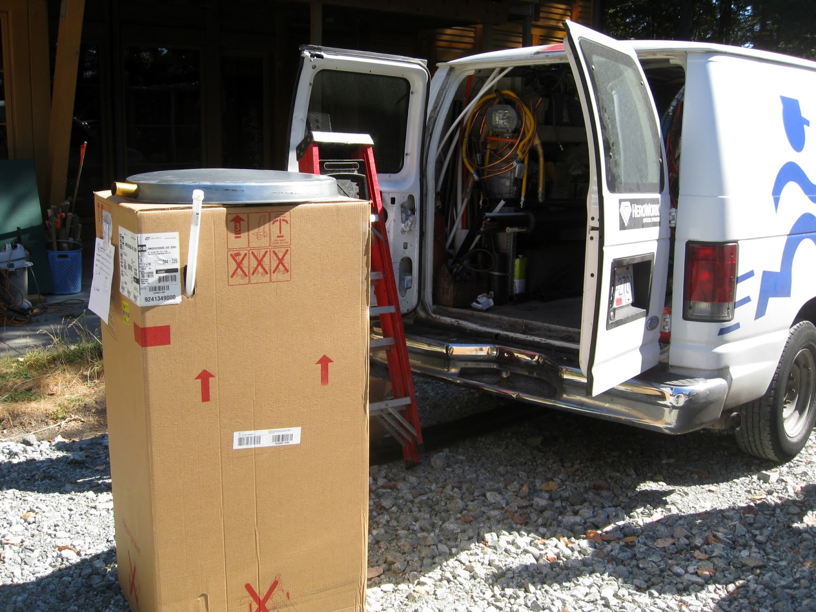 The plumber delivered the hot water tank.