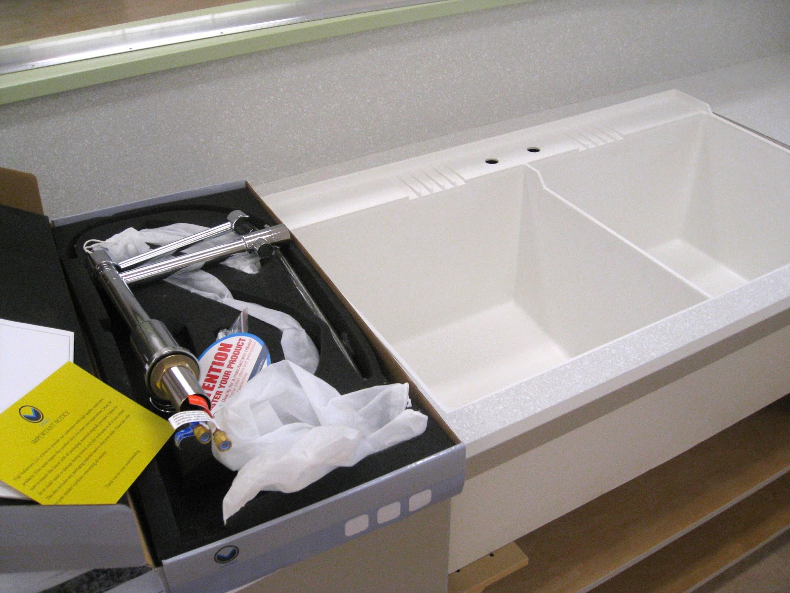 Ron unpacked the new sink faucet that arrived in the mail.