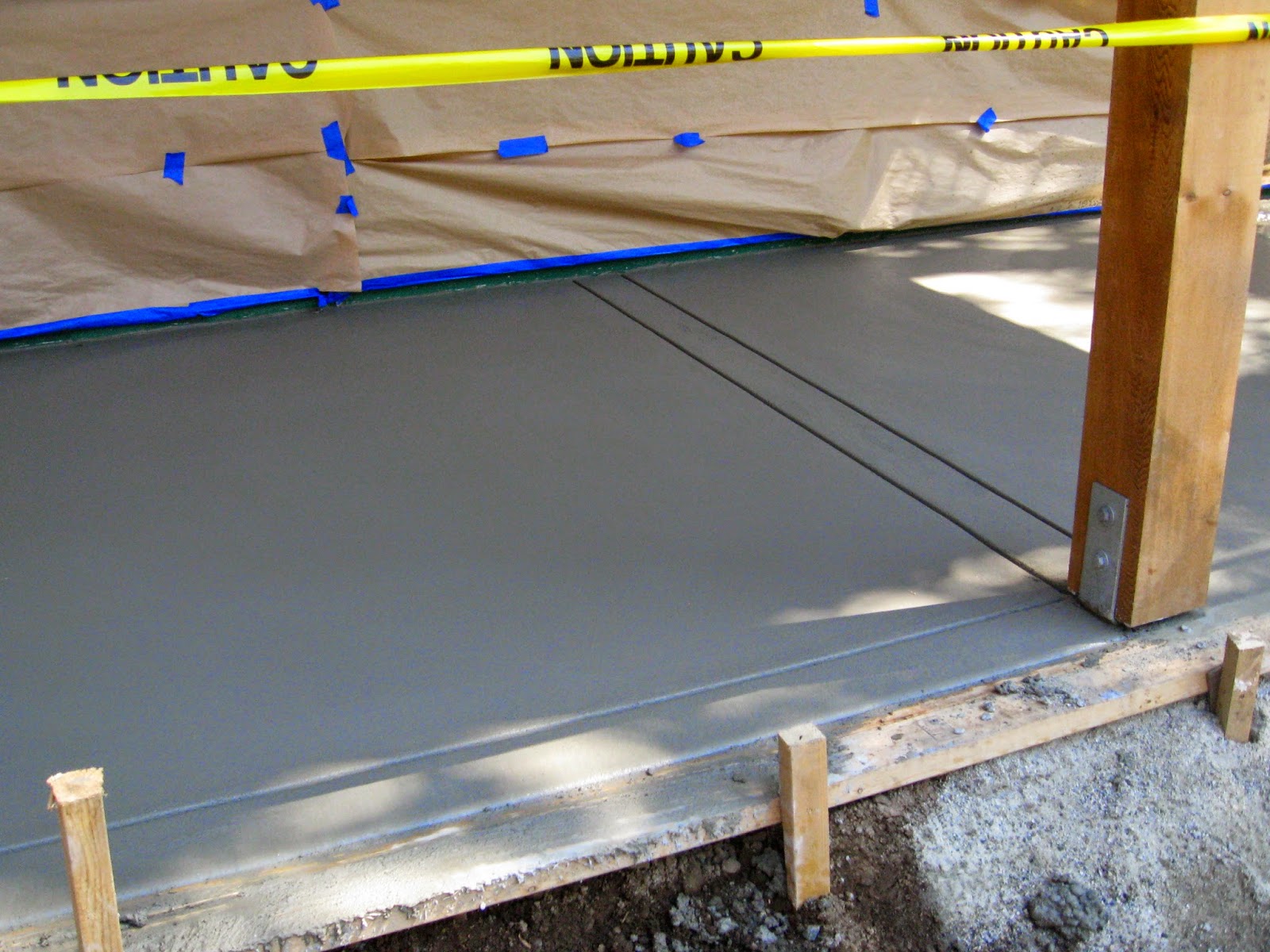 Lines were cut in the smooth, wet concrete to absorb the stress that otherwise would cause cracks.