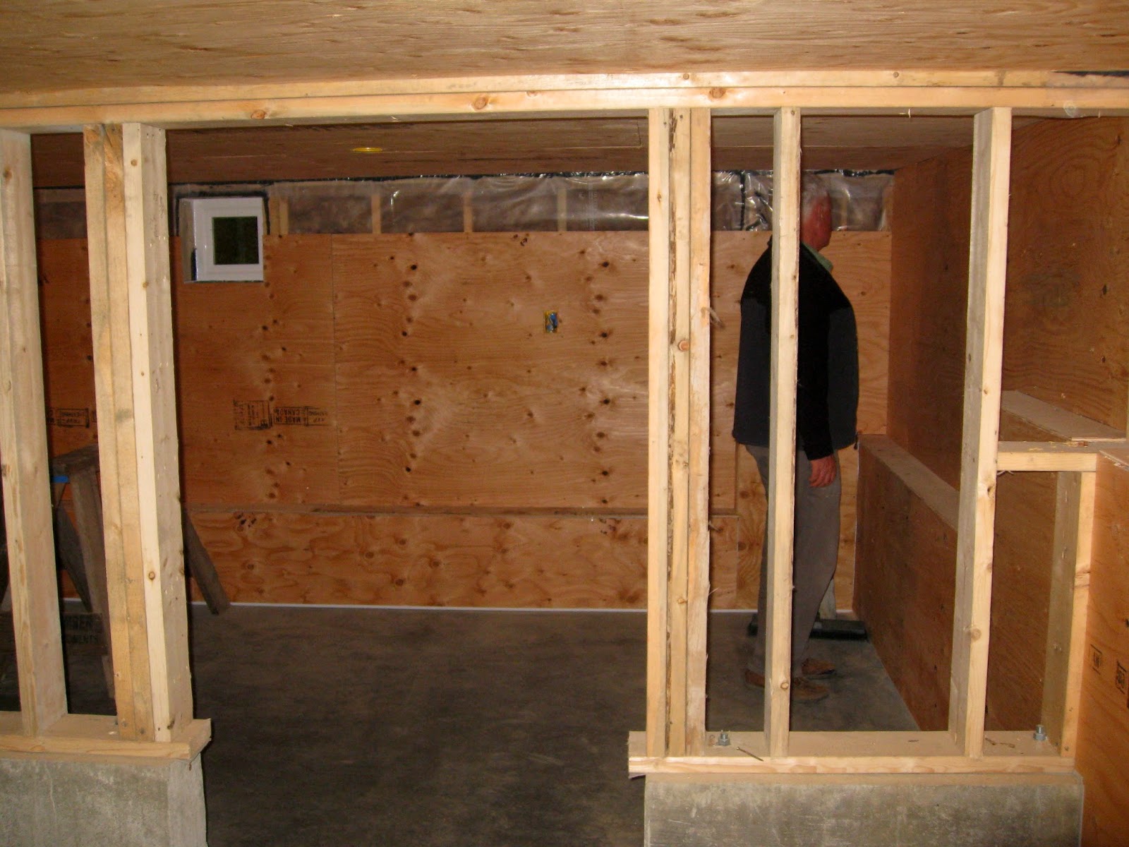 Dave continues to make progress lining the crawlspace with plywood.