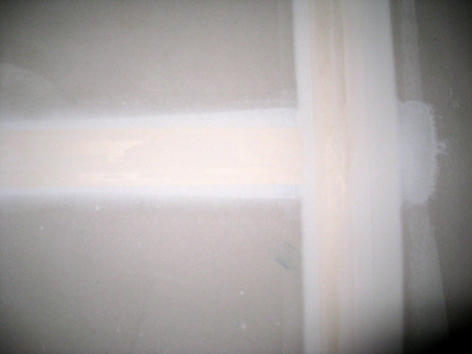 The first stage is to tape and mud all of the drywall edges and rough spots.