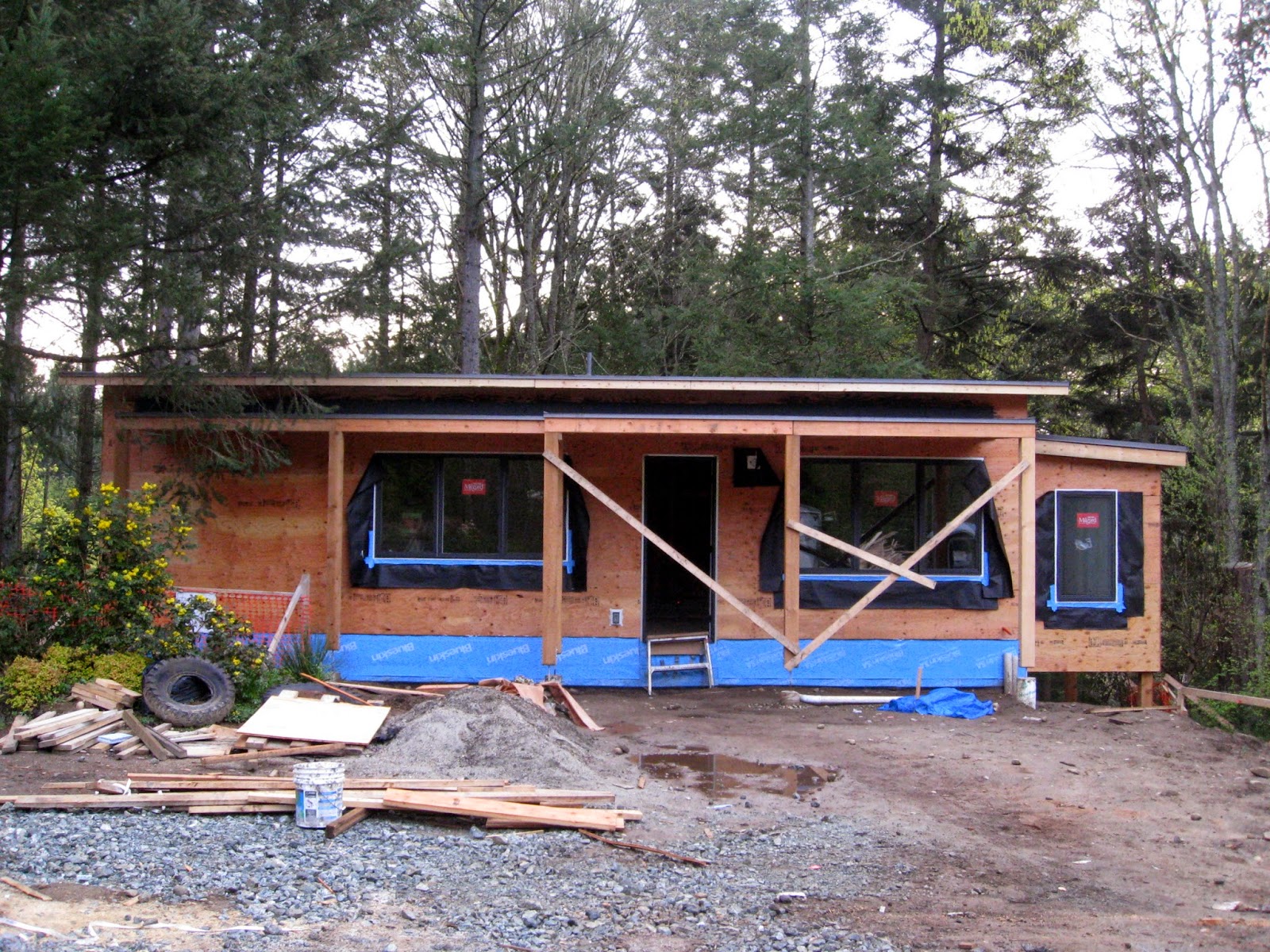 Cladding Dave can be seen beginning to wrap the building in Tyvek.