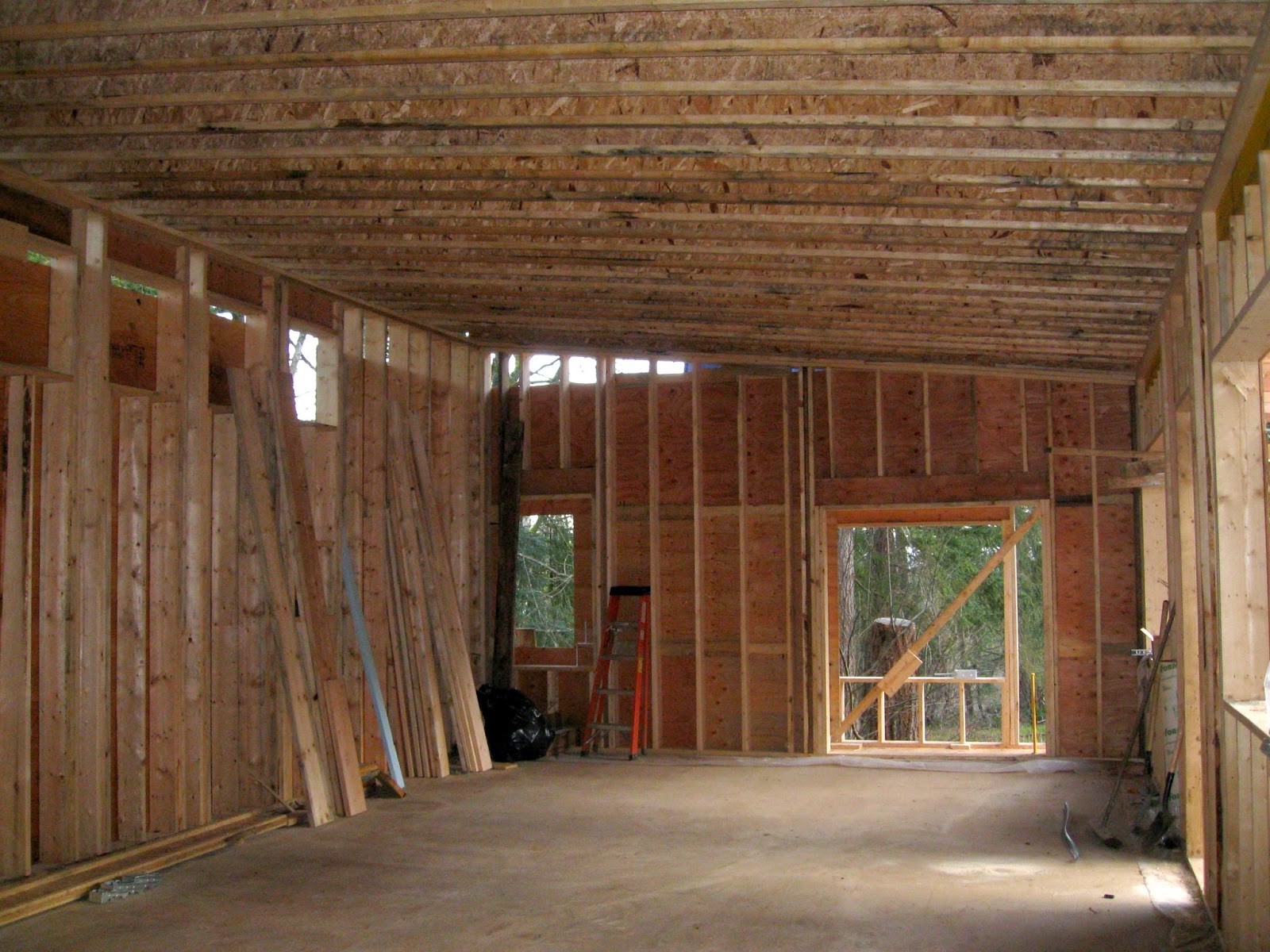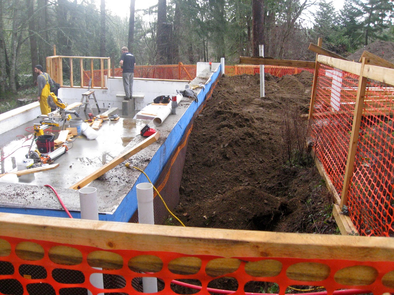 The studio's outside dimensions are 20 feet wide and 40 feet long as limited by the space between the trees. The walls are 8 inches thick making the inside space smaller.