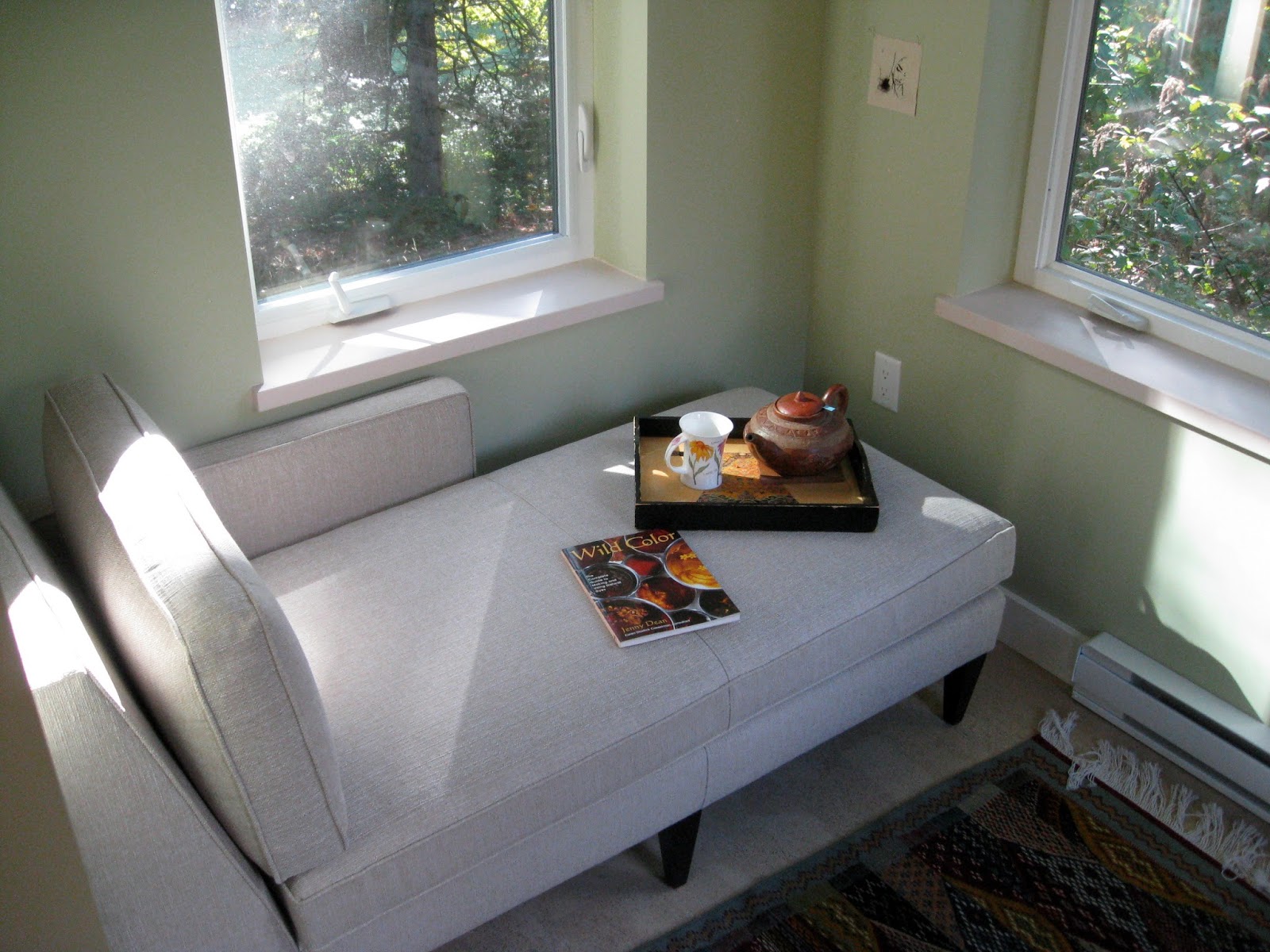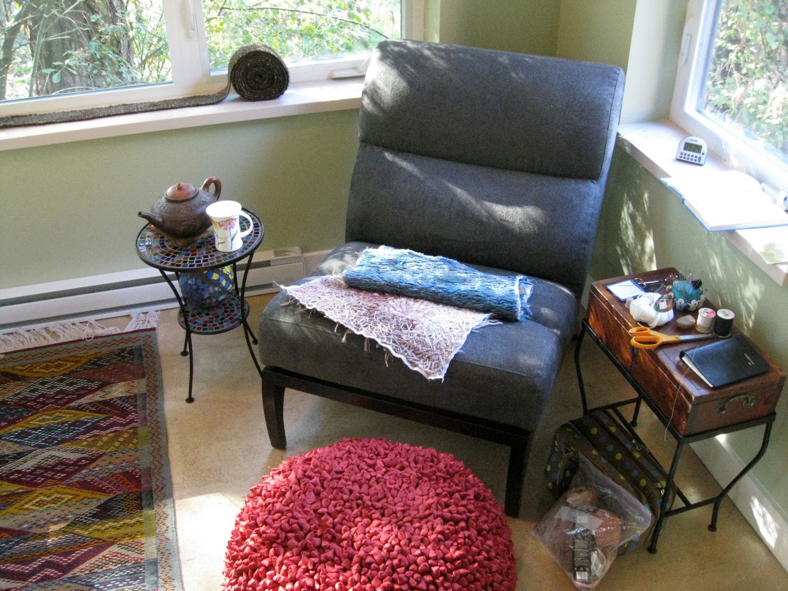 There is a step down into the sunny room where I go to read, stitch, have tea and contemplate.