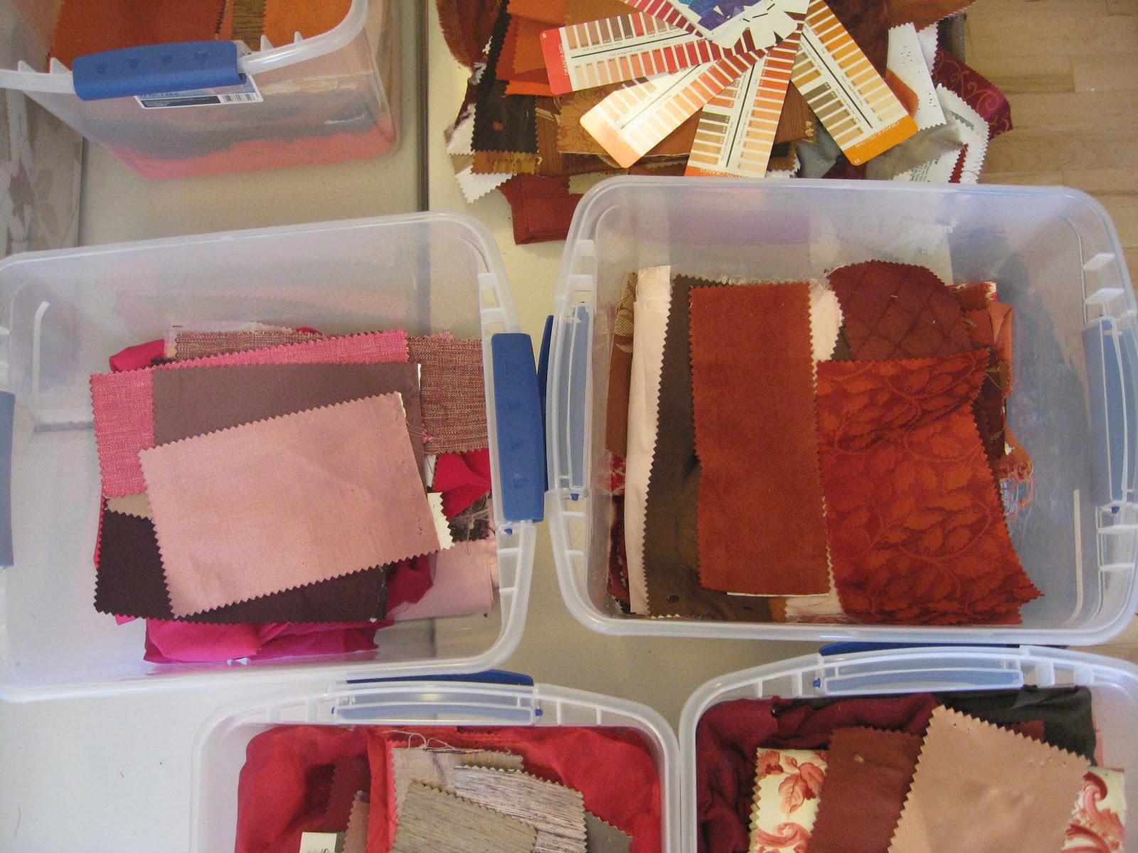 I rounded up all the loose yarns and threads, sorted them by colour then put them away in my thread colour- coded boxes.