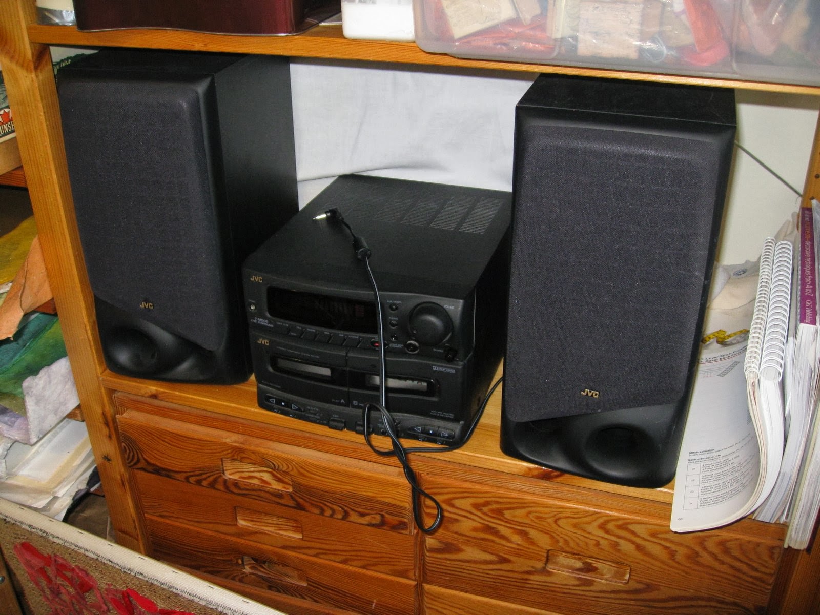 What to do without a sewing machine for '7 to 10 days'?A studio tidy-up would be a good use of time.For my birthday I was given this compact little 'thing' that is a speaker for music I have playing on my tablet or laptop which is in another room in my admin area. It means I can have my music playing right beside me where I am working. It also does double duty as a charger for various devices.