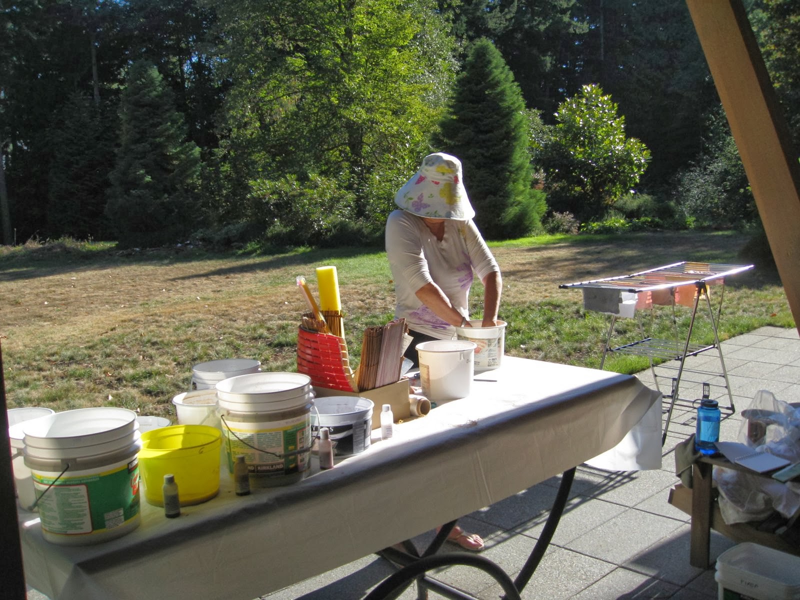 The set up. Note the perfect hat I have found for working outside in the sun.