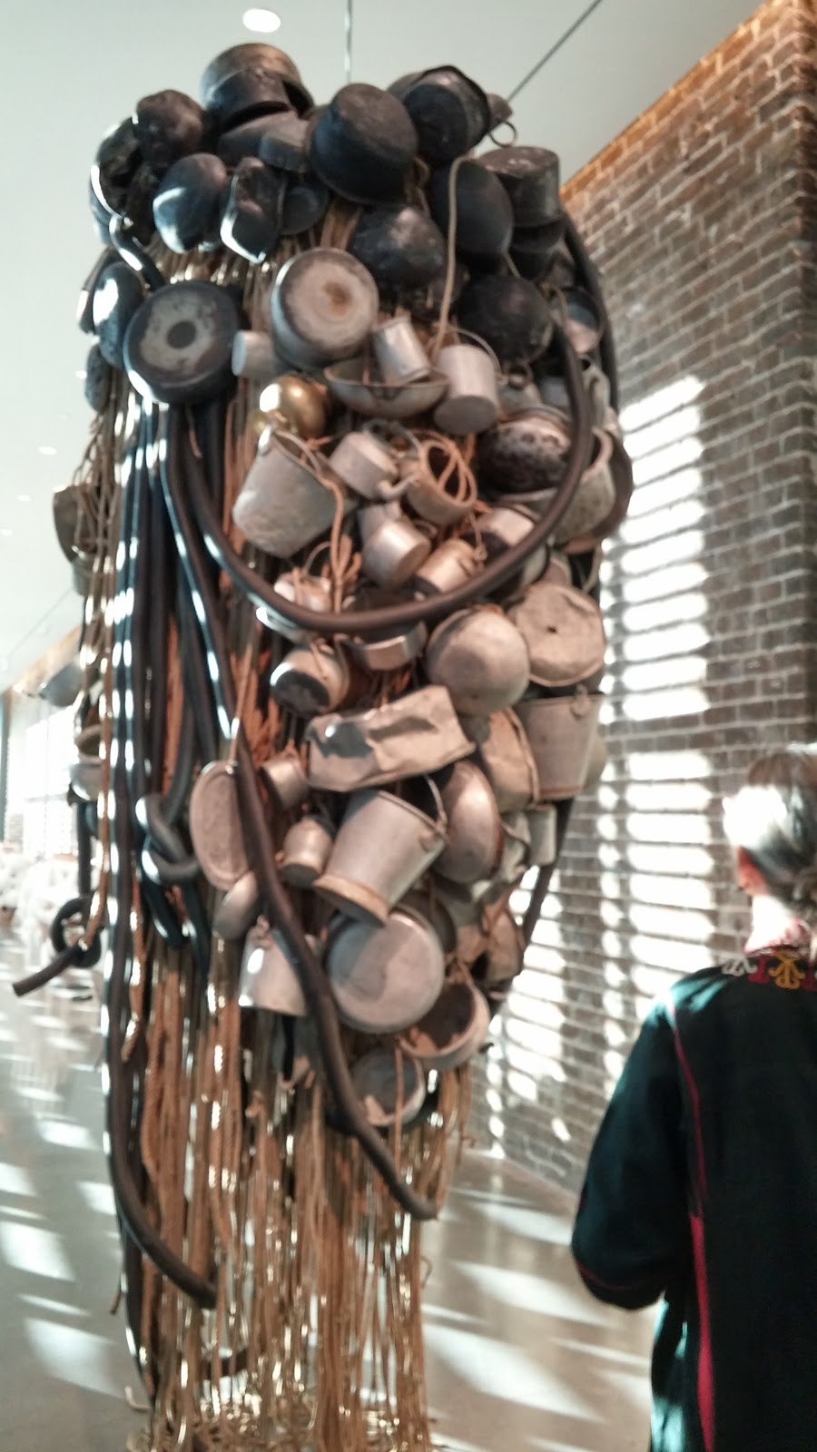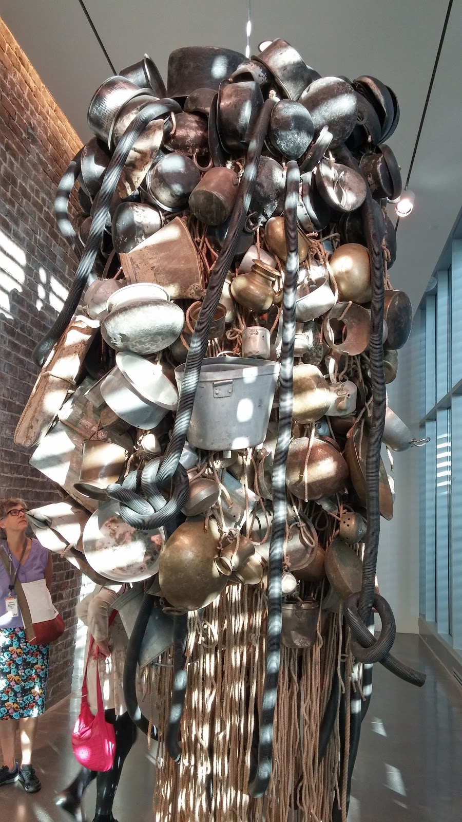 This fabulous installation is an endlessly fascinating collection of well-used cooking pots and containers. The setting sun reaching through blinds to spot illuminate the work only added to its curiosity. People just walked around and around looking up and smiling.