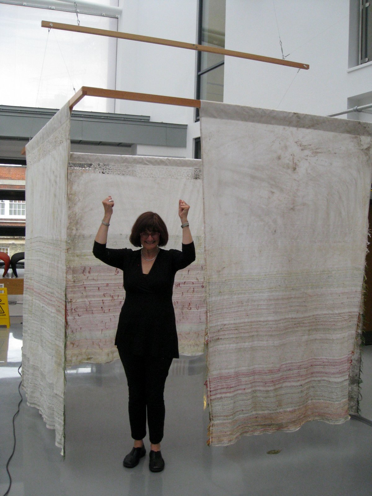 He consults with another artist's assistant (Judy Martin's husband Ned) on the workings of the trapezes we are hanging our work from.