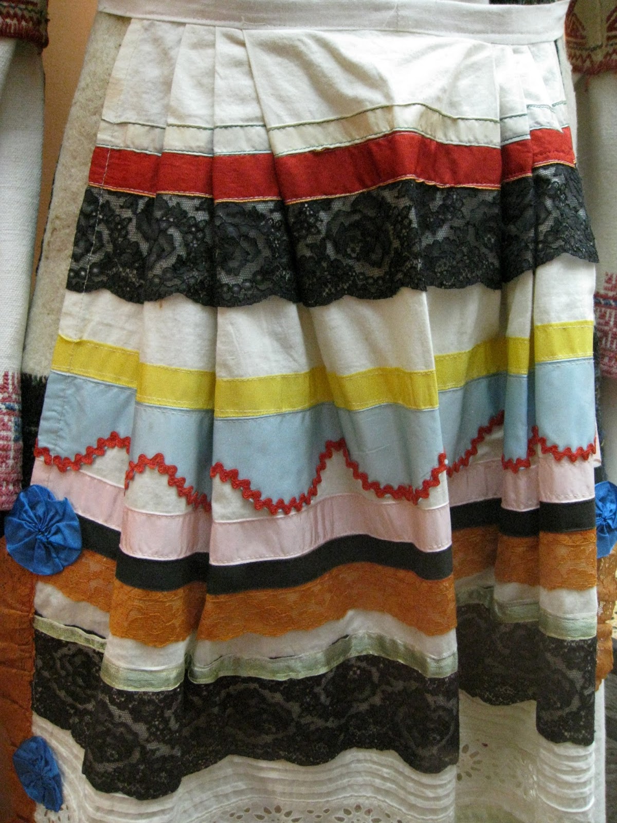 Apron: Appliqued ribbon, rick rack and lace.