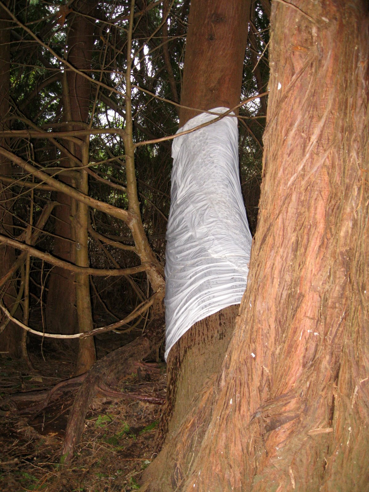 After I had pre-mordanted 4 bed sheets, I wrapped my 4 trees with cloths for the second time.
