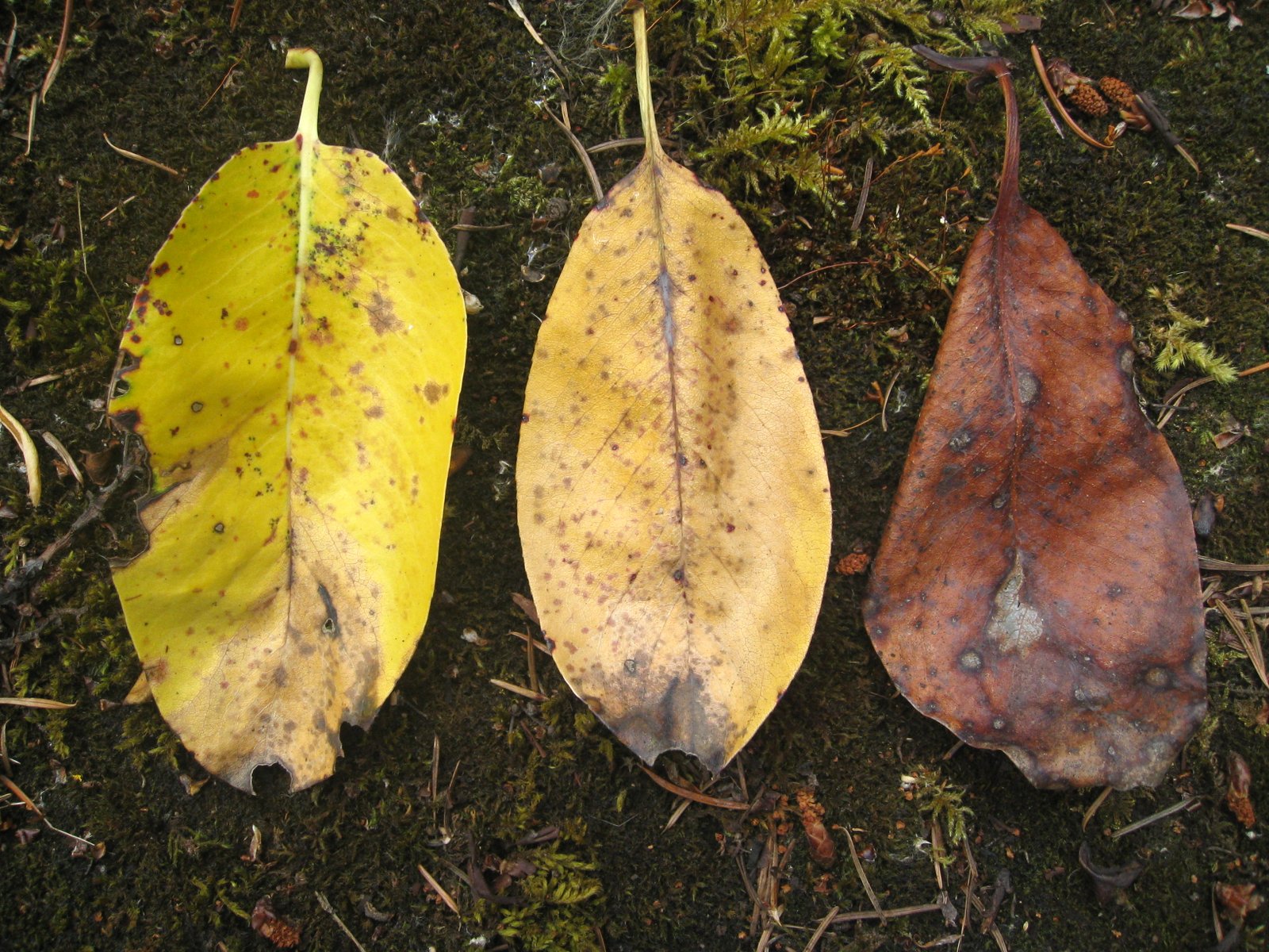 The Arbutus is an evergreen but it sheds half its leaves over summer. There is a shift from a yellow green to a low intensity orange.