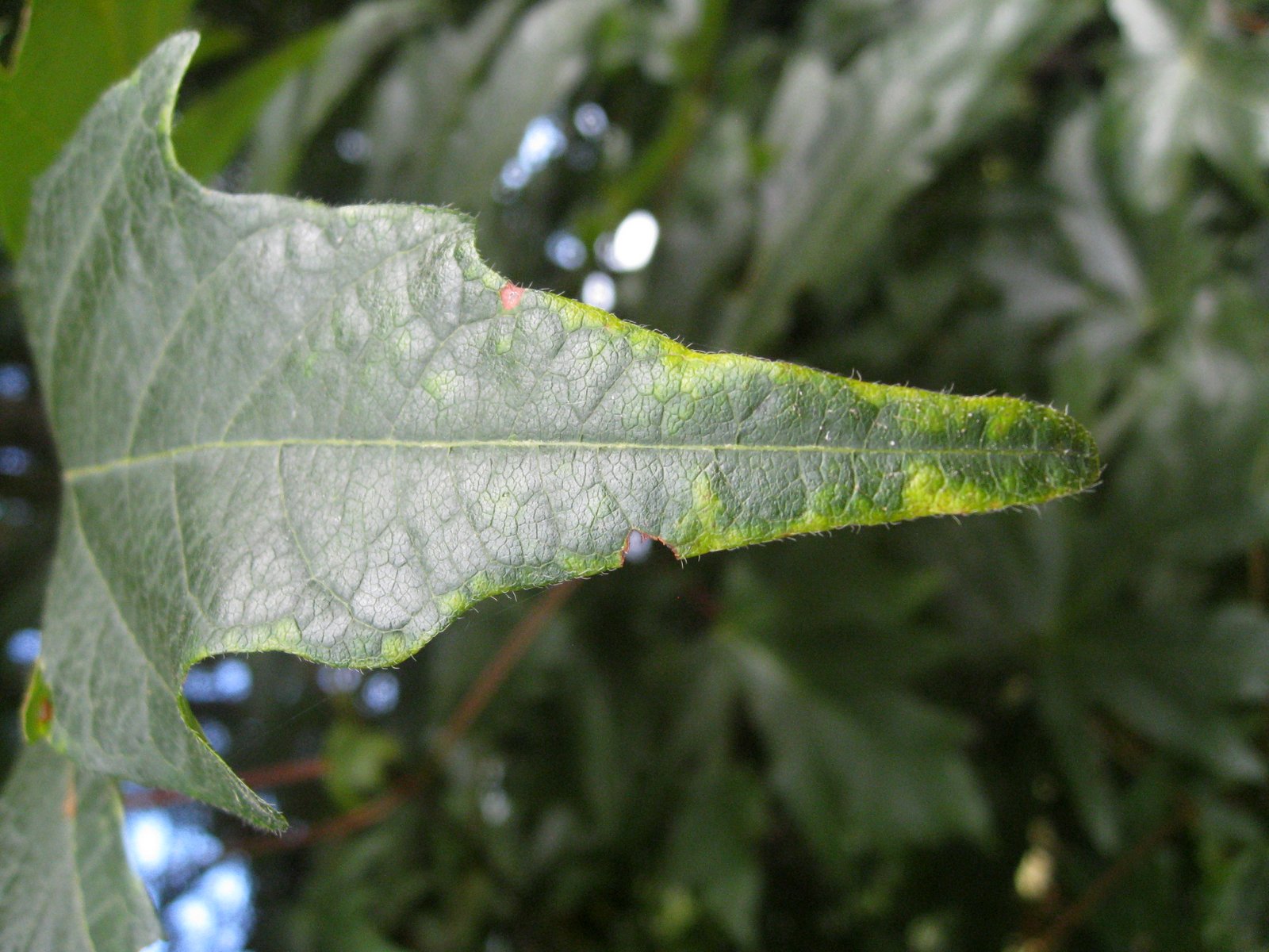 The Maple is also showing a change - the chlorophyll is beginning to move downward.There is a shift in colour from green to yellow.Fall is coming.