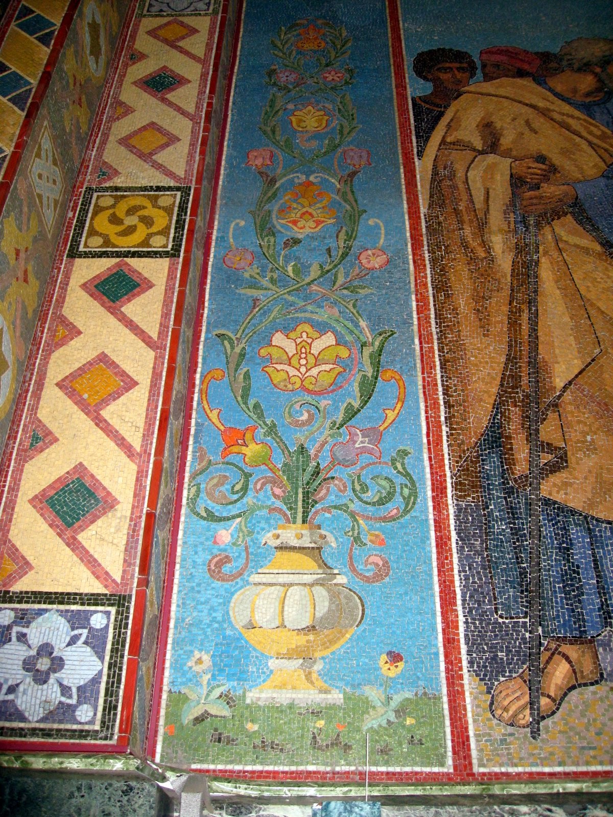 I found some very interesting ones in the Church of our Saviour on Spilled Blood, in Saint Petersburg.