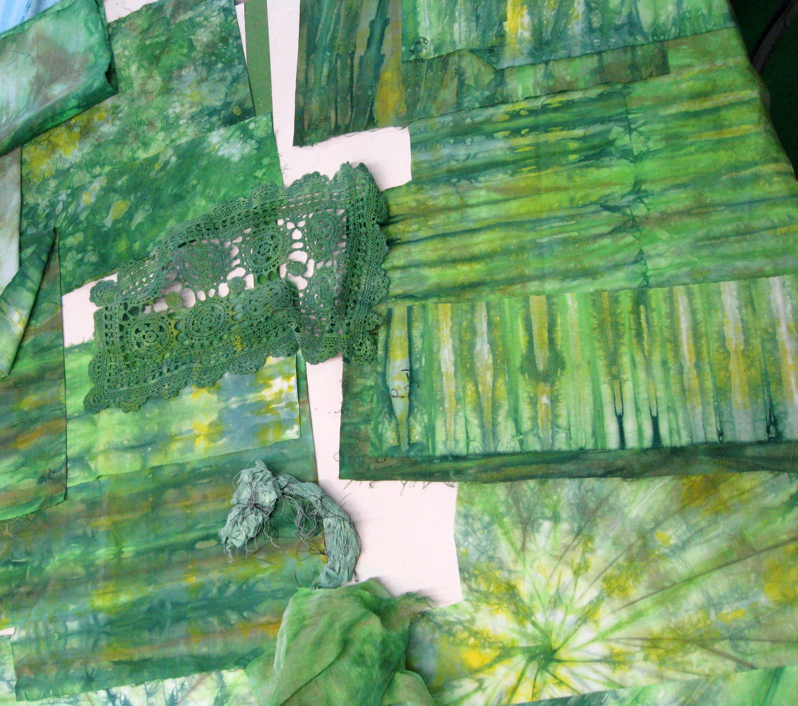 Laura's 1st layer of dyesShe found linen dyed the darkest.
