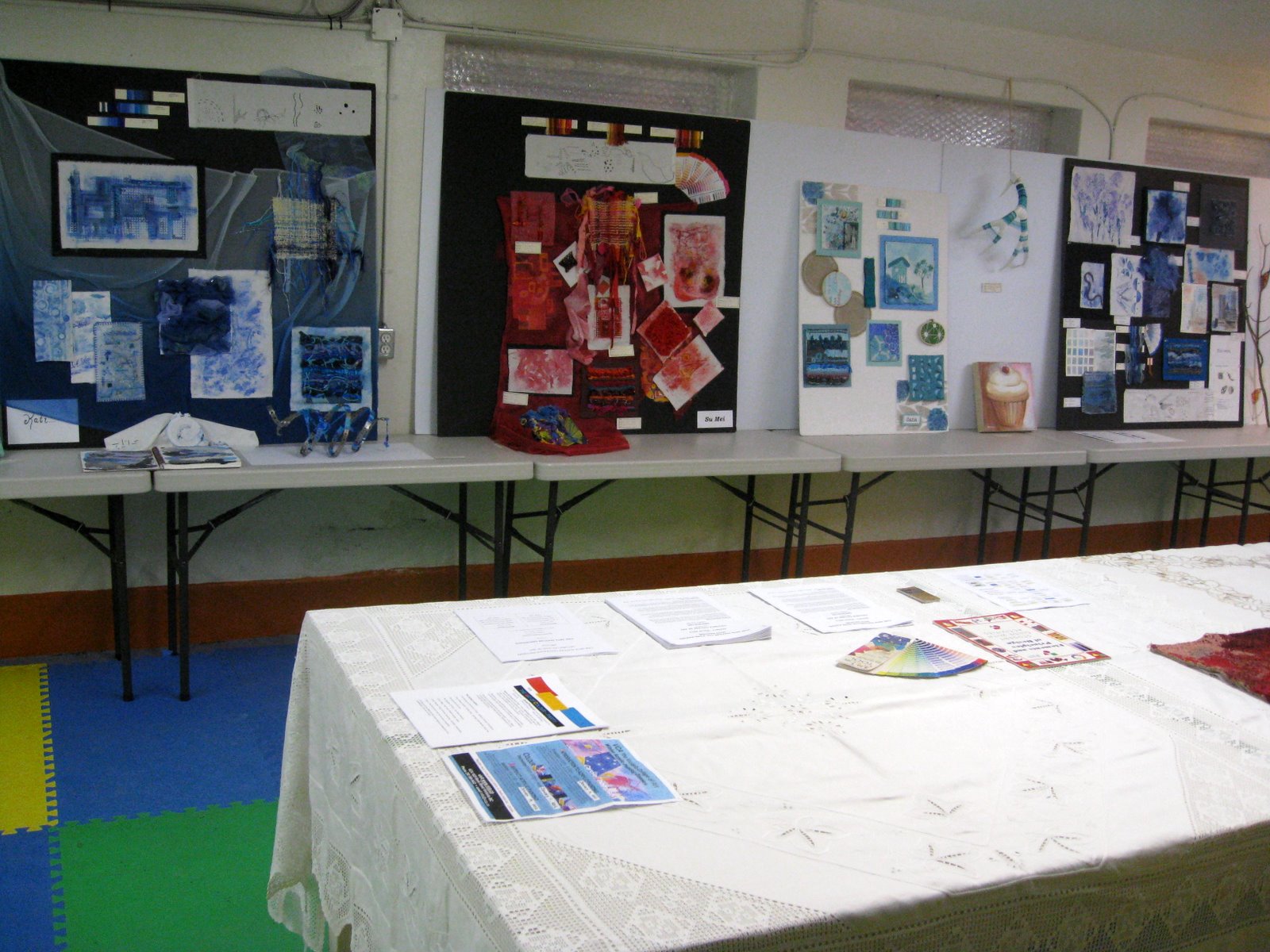 What a busy and exciting 3 days we have had in the textiles studio at the college.On Thursday students turned up with rubber gloves and gave the studio a thorough clean.On Friday morning they finished off their boards displaying their work and set up the studio.