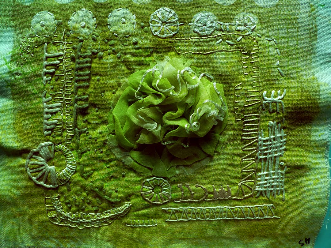 Sonia Park was a student in the Mark Making With Thread course. She had to return to her home country, Korea, before the Christmas show so she has sent us images of her completed work.