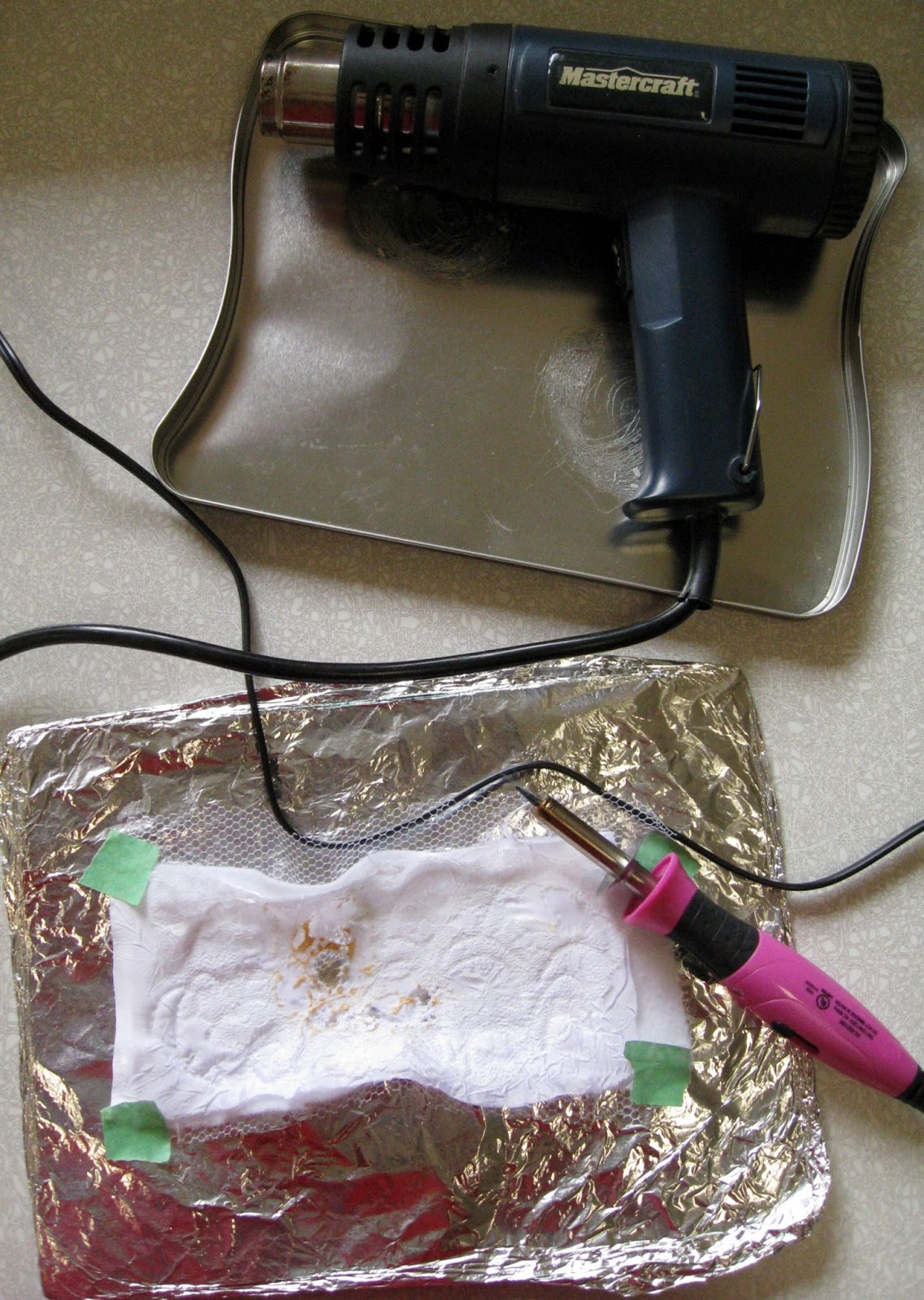 I test all of the fabrics and sandwiches with a heat gun and a burning tool.