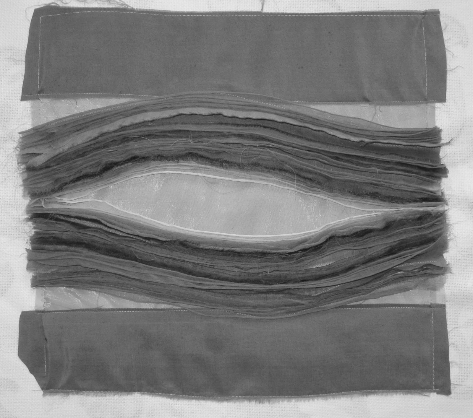 When I make work I do a lot of research and pre-planning in a sketchbook. Next, I sample with the actual fabrics. When I am actually making the work it feels as though I am back at the trial and error stage but this time I am working towards producing that image or feeling I have of what the work should be and it guides my decisions.