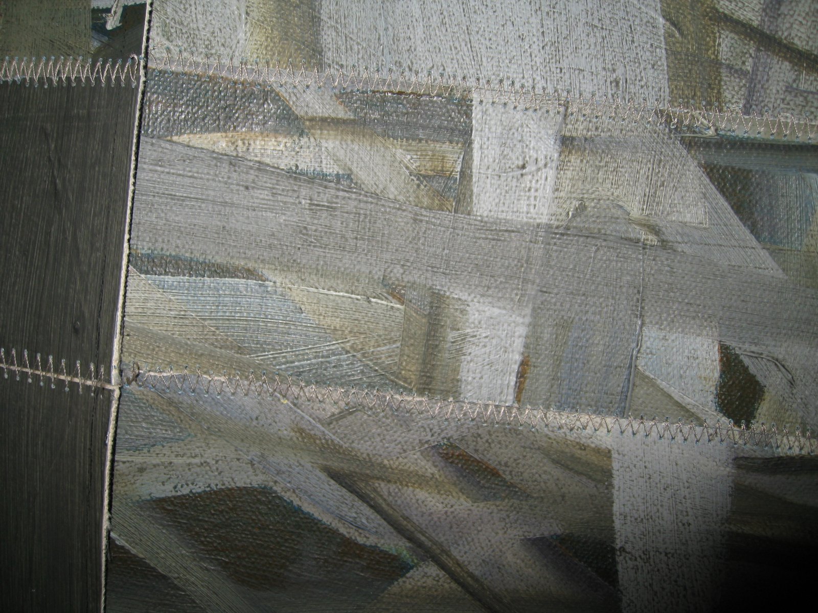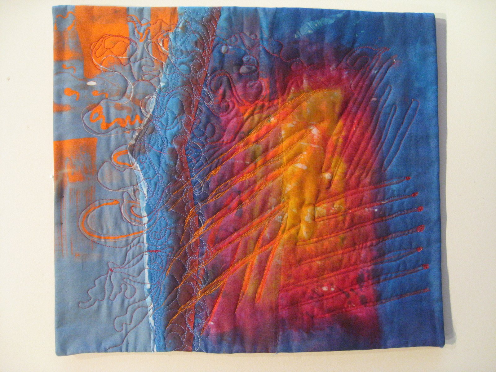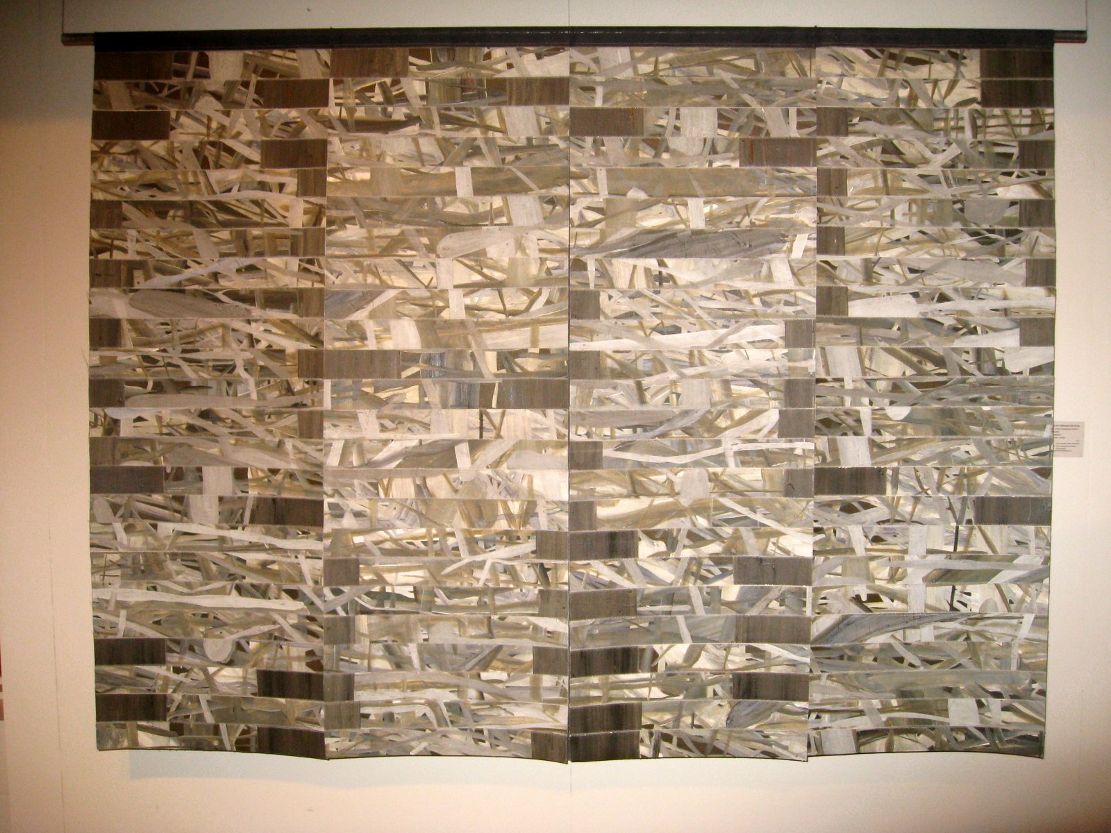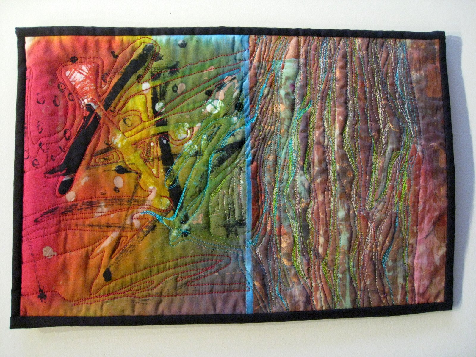 SplinterFrom what I could see, Susan painted a canvas with oil paints, interfaced the canvas, cut it up then sewed it back together again like patchwork.