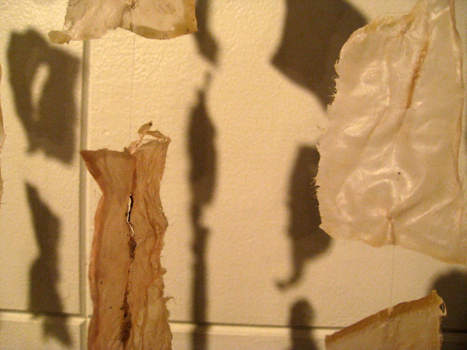 The First Year of Grief: everyday never feels like the yesterday I need it to.Silk organza, powdered drink mix, tea, and waxed linen thread were hand stitched then covered in wax.