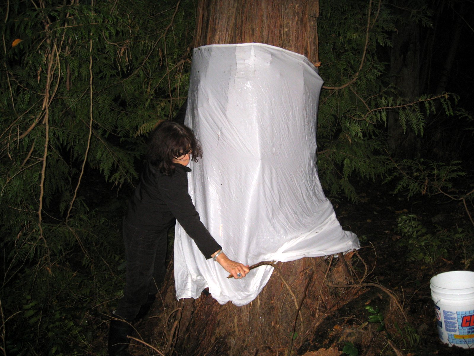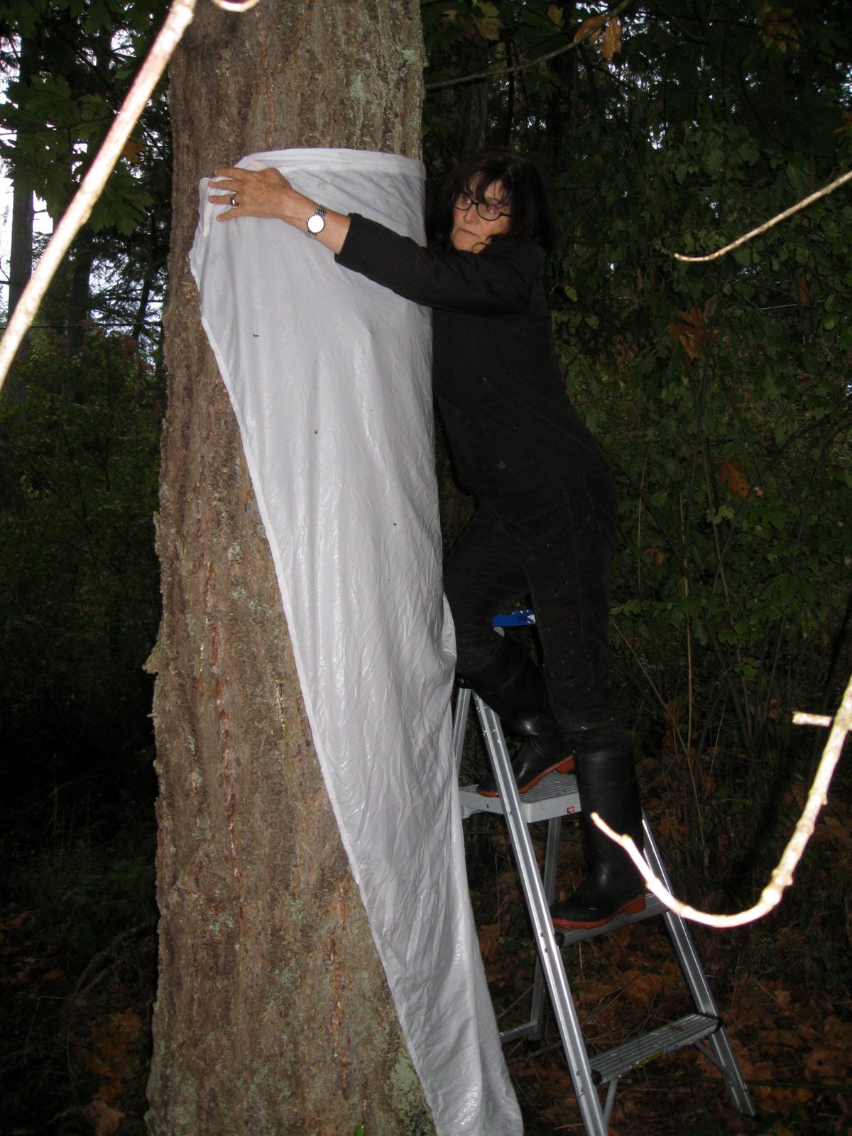On my tutor's advice I wrapped another set of 4 trees with bed sheets.