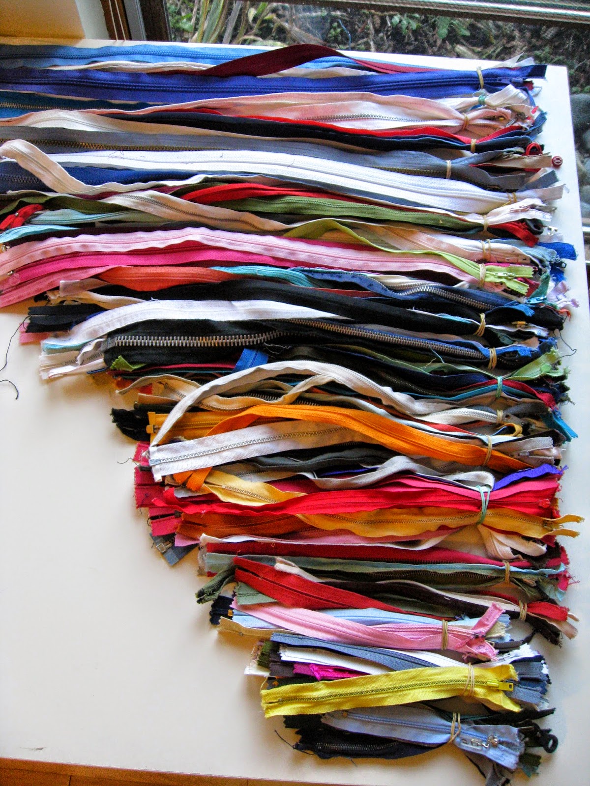 The other day I looked at my tangled collection of zippers. Vintage zippers in old packaging. Zippers reclaimed from garments. Discarded zippers from other's stashes. I was planning to do some work that involved using a number of zippers but wasn't looking forward to sorting through the pile each time I needed one. Did I even have one the right length, the right colour, the right type? I couldn't go out and buy the right one when I have so many in my collection but a time consuming and possibly futile search each time I needed one was going to slow me down. I needed to reduce the frustration level if I was ever going to use them.
